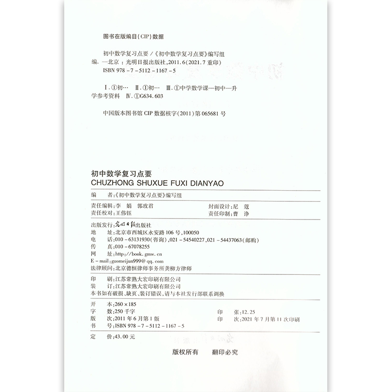 2021-2022学年度 初中数学复习点要+参考 初三中考总复习修订本 上海初中九年级数学知识梳理考点整合光明日报 初中数学复习点要
