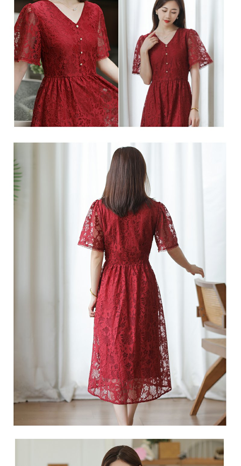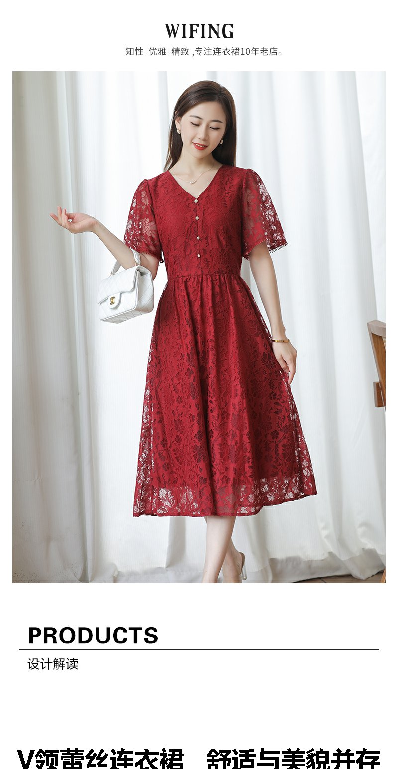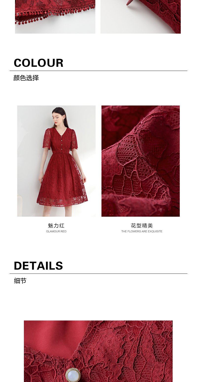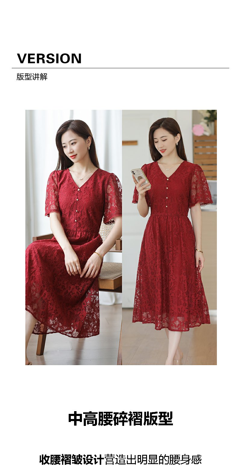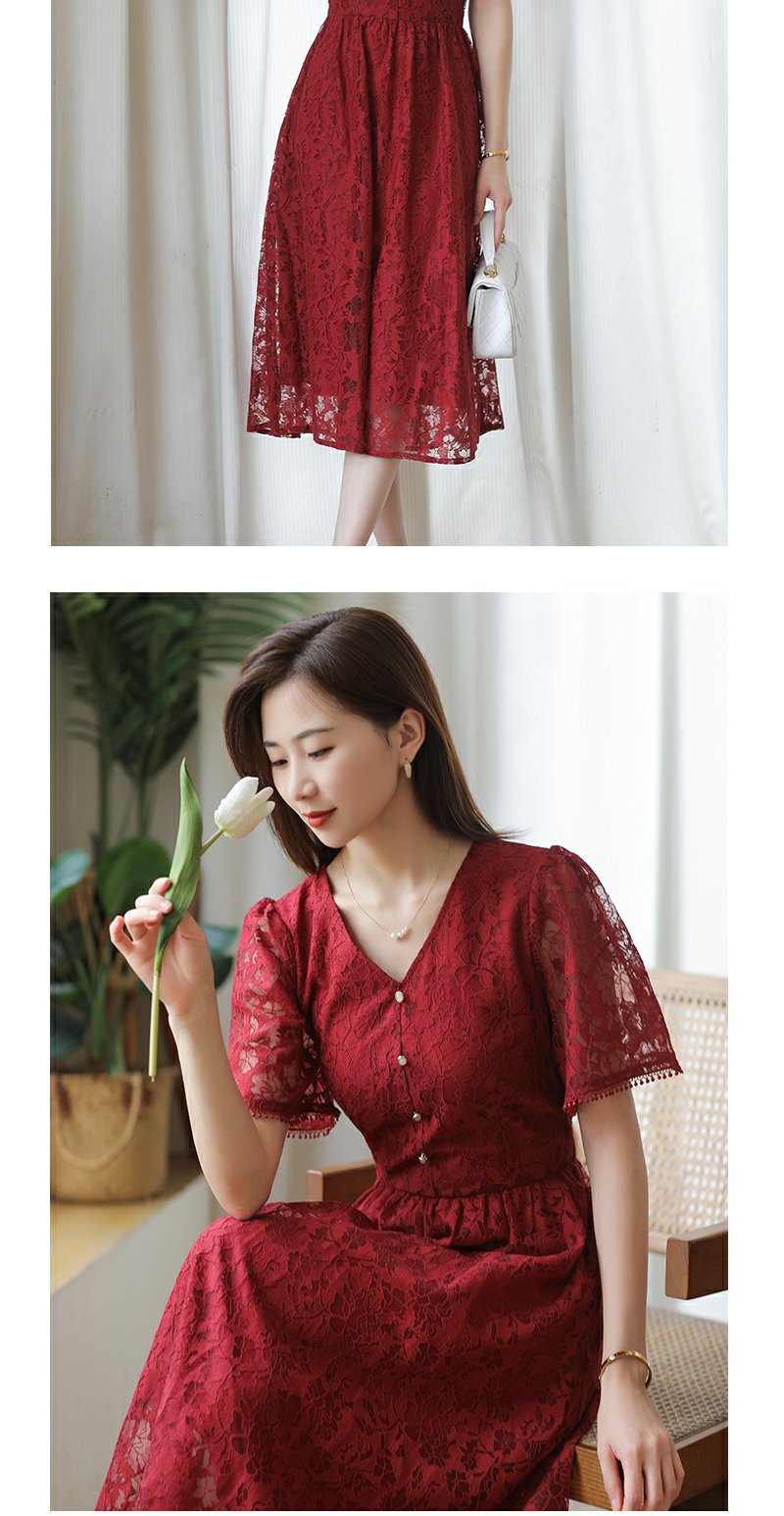 未风红色蕾丝镂空连衣裙女夏2025年夏季新款女装气质高腰显瘦裙子