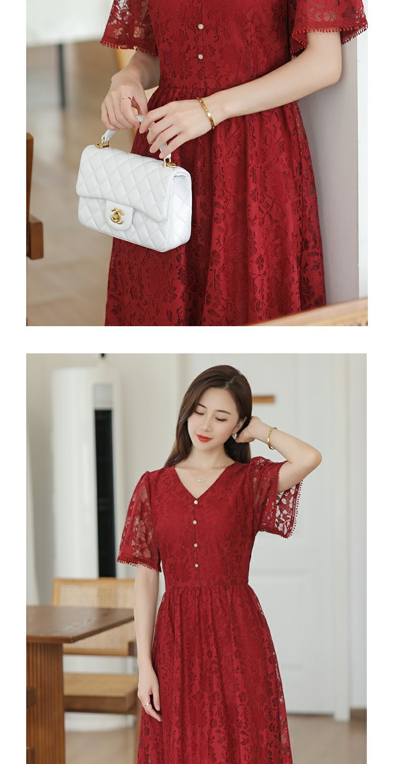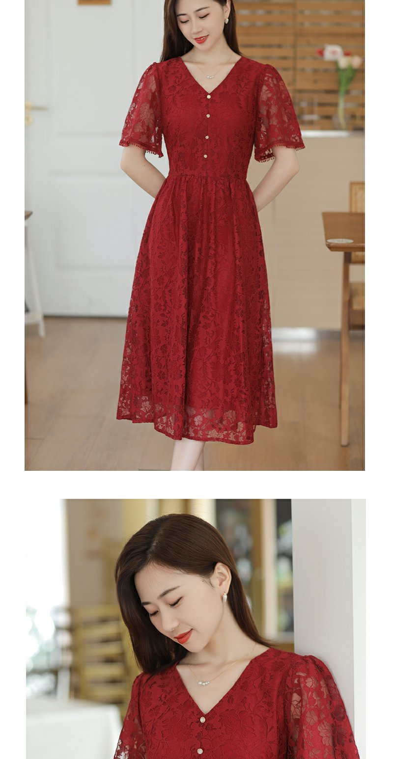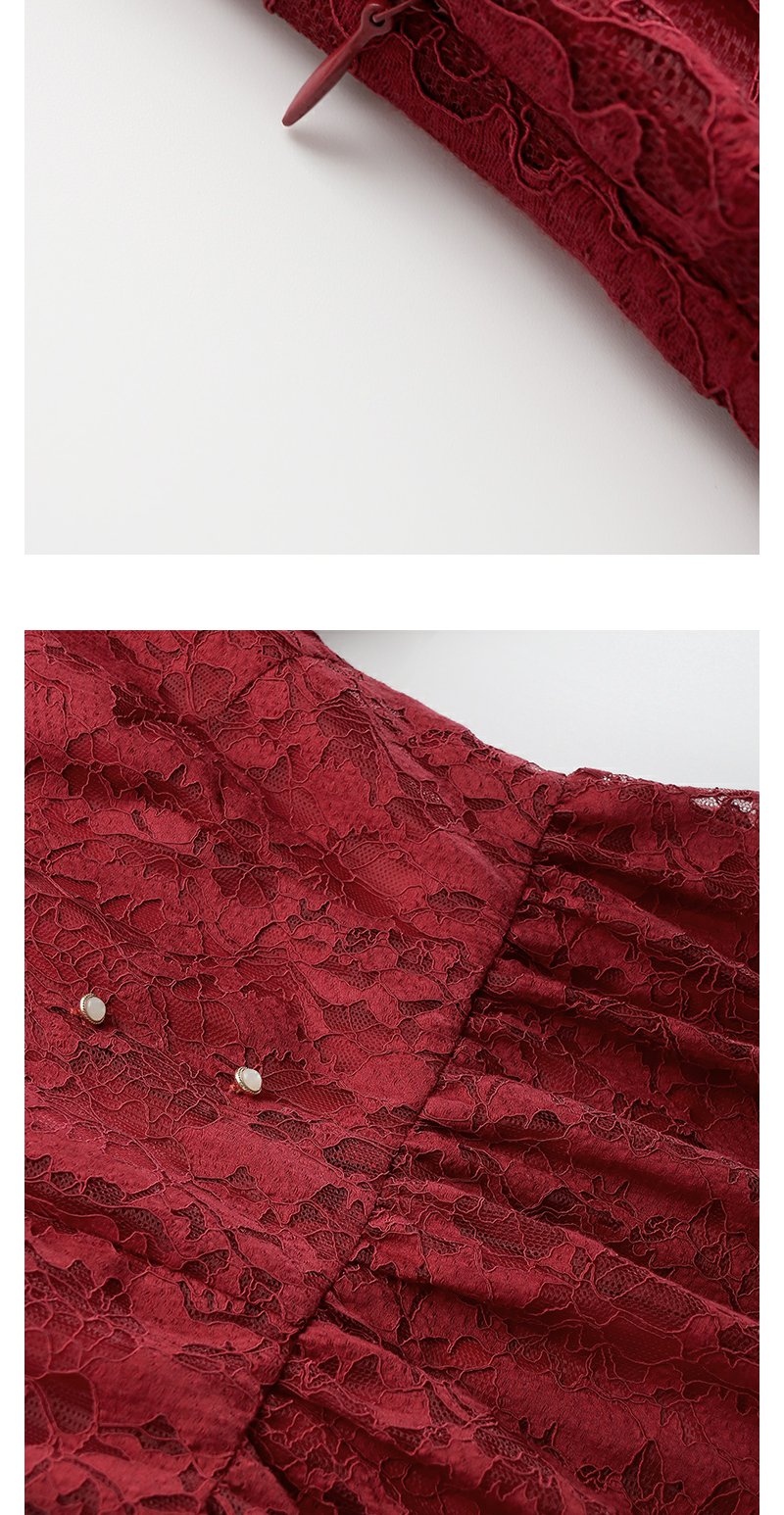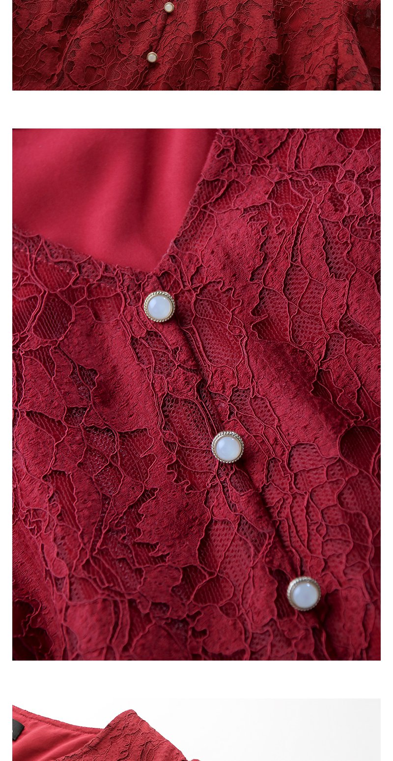 未风红色蕾丝镂空连衣裙女夏2025年夏季新款女装气质高腰显瘦裙子