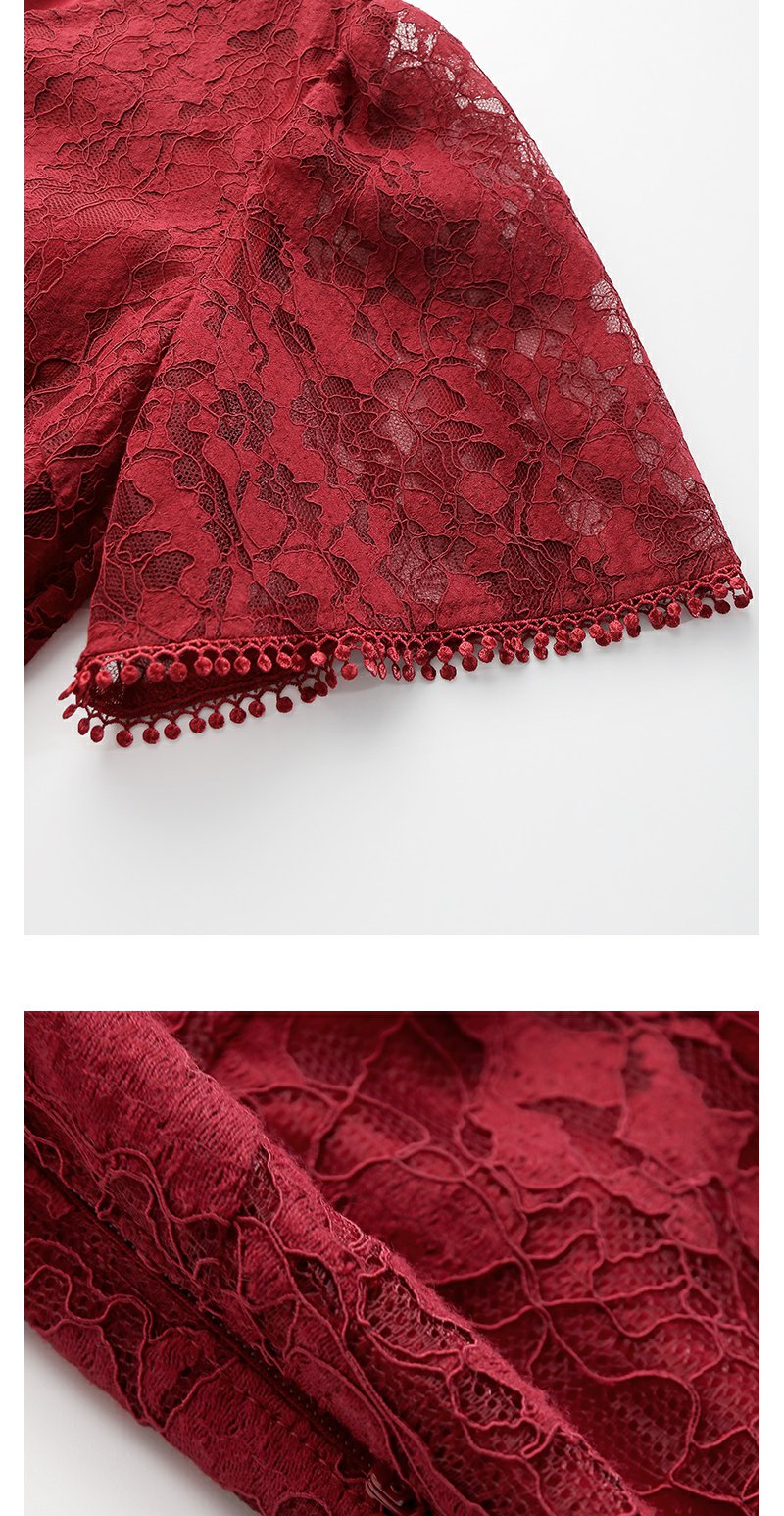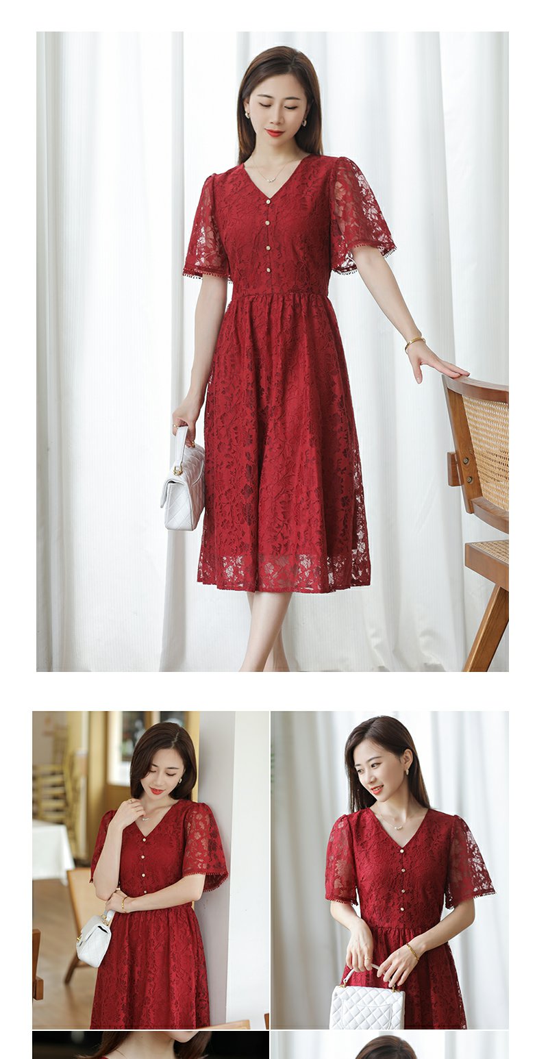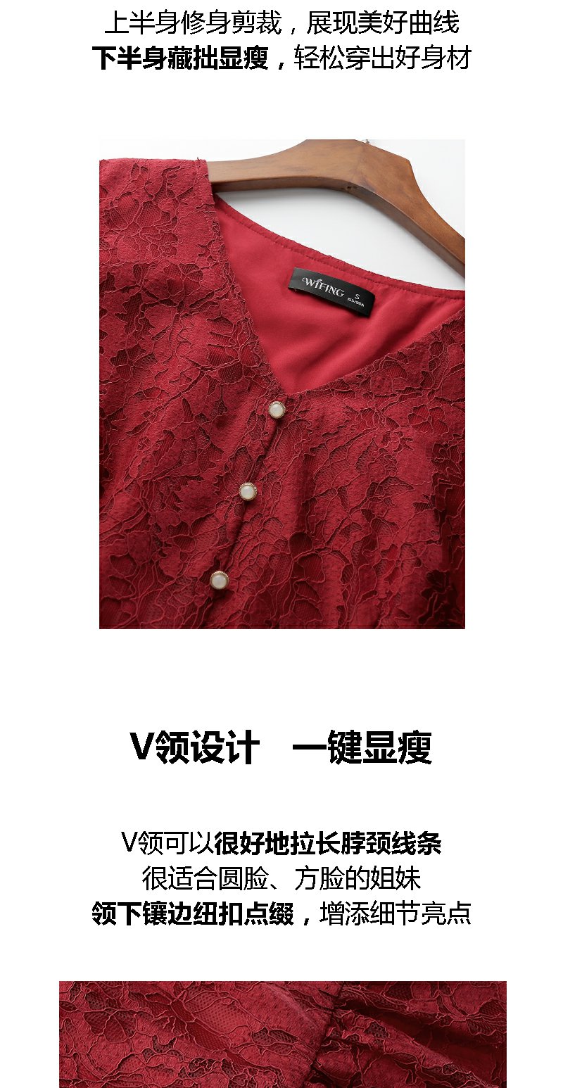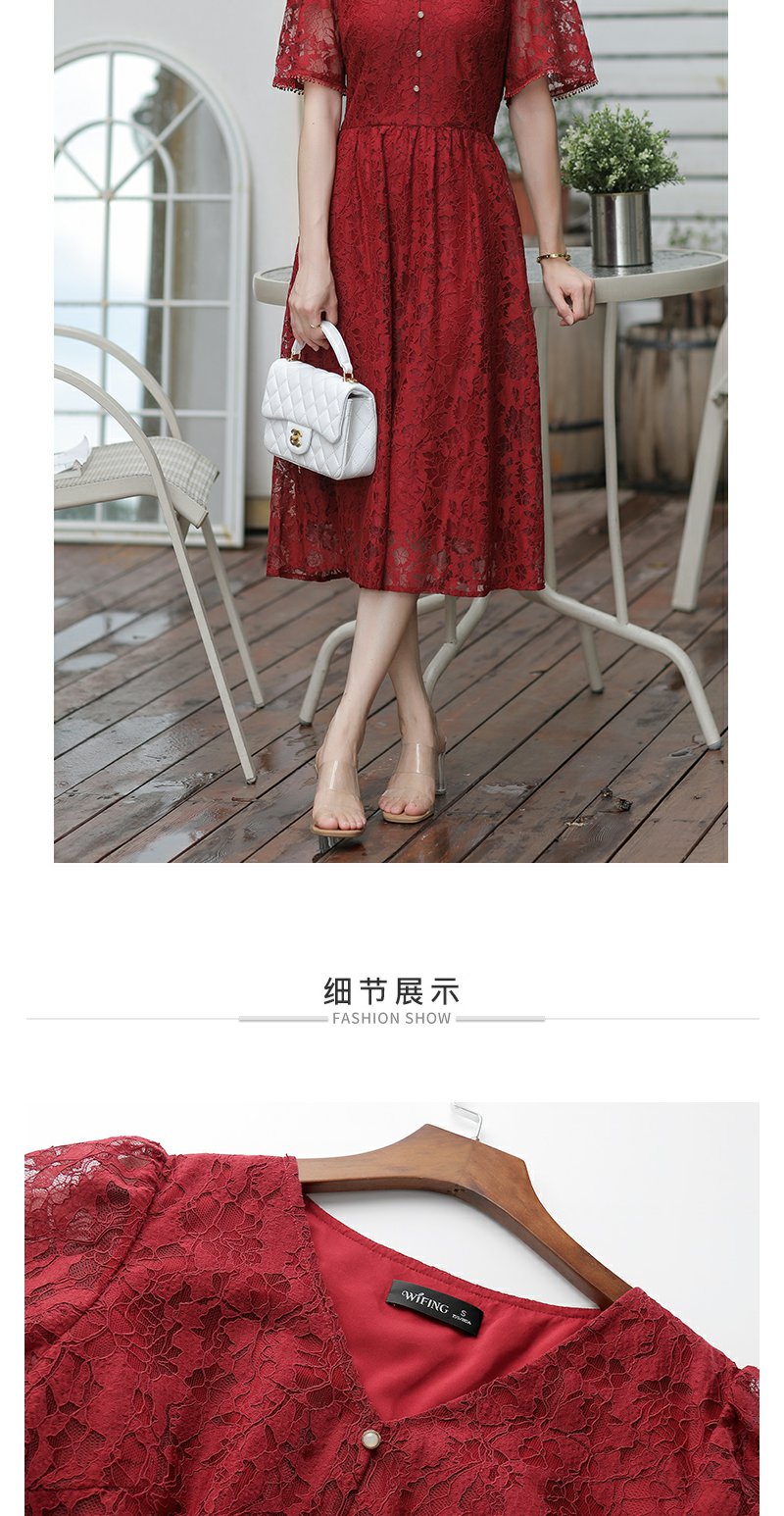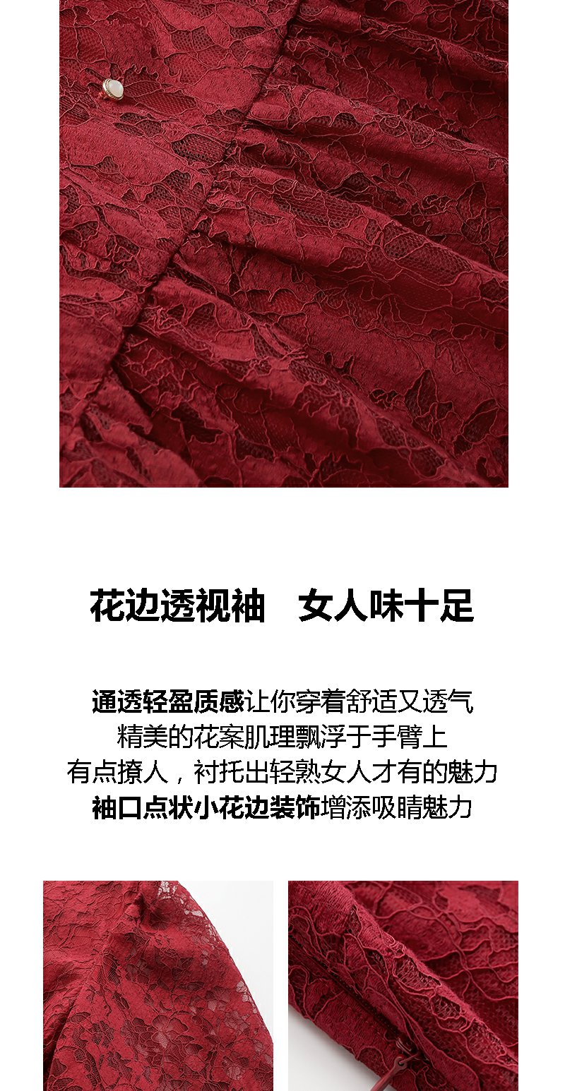 未风红色蕾丝镂空连衣裙女夏2025年夏季新款女装气质高腰显瘦裙子