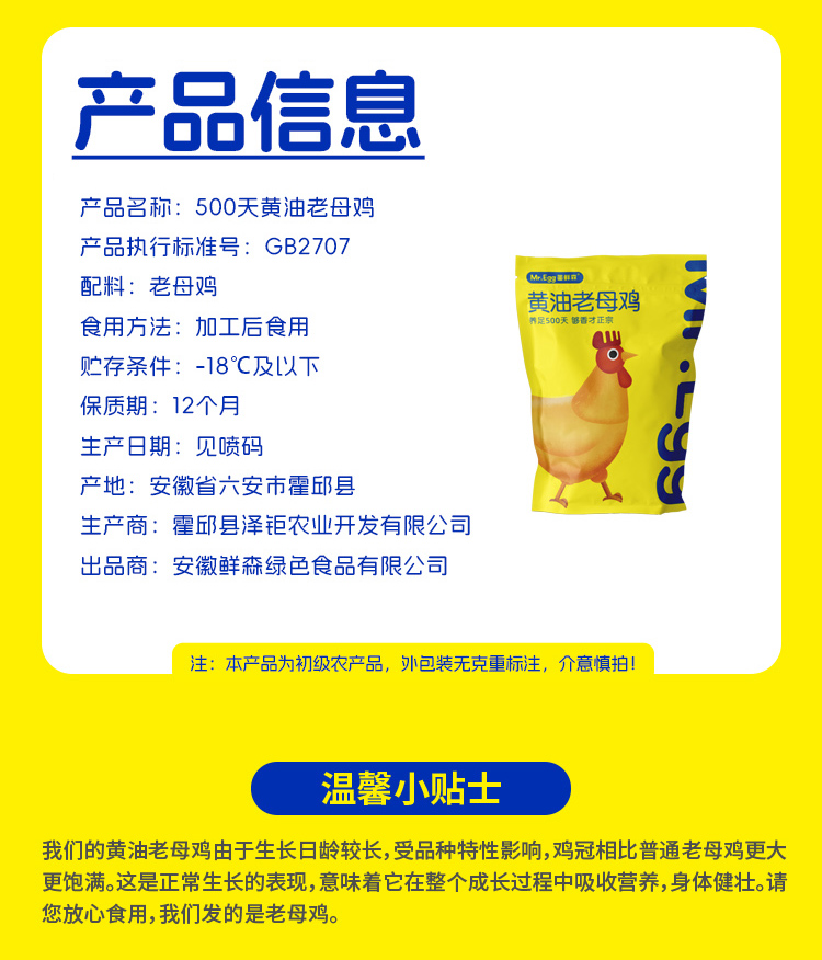 蛋鲜森黄油老母鸡单只装(不含彩箱)【分仓直发,72小时发货,周末节假日不发货】