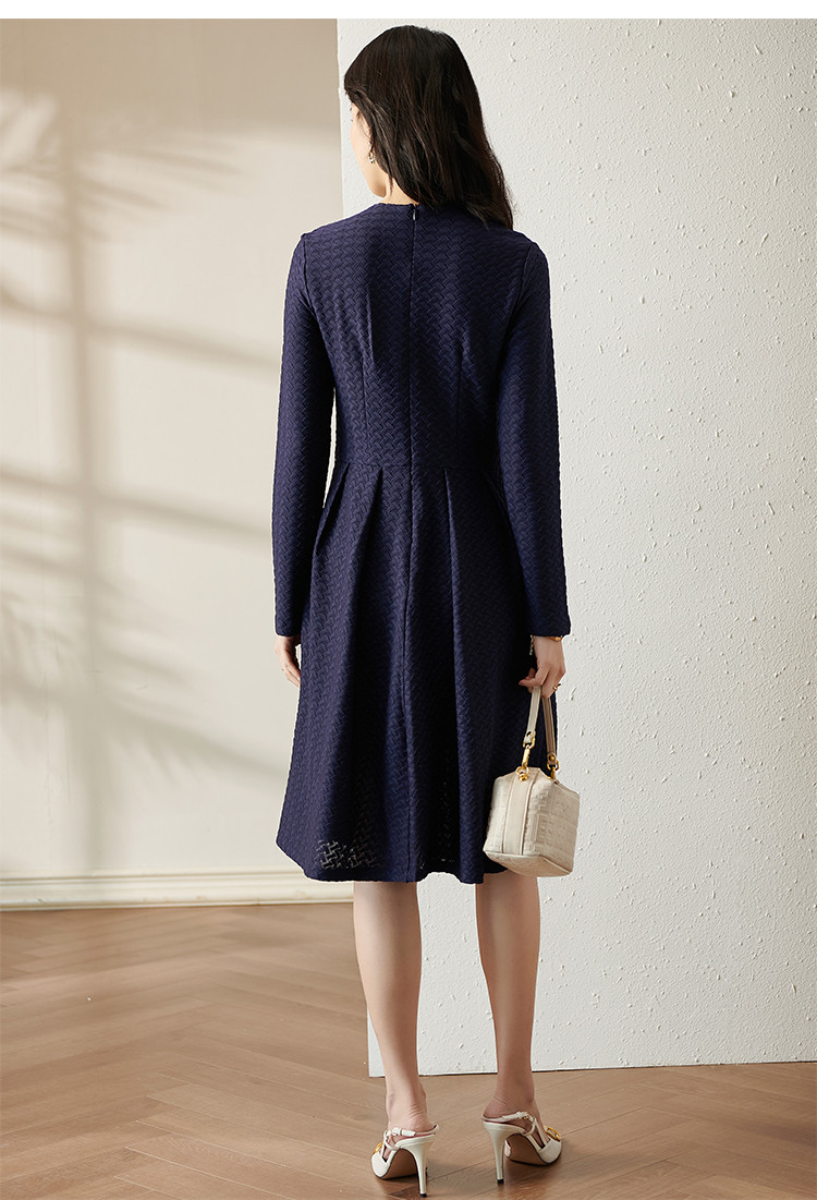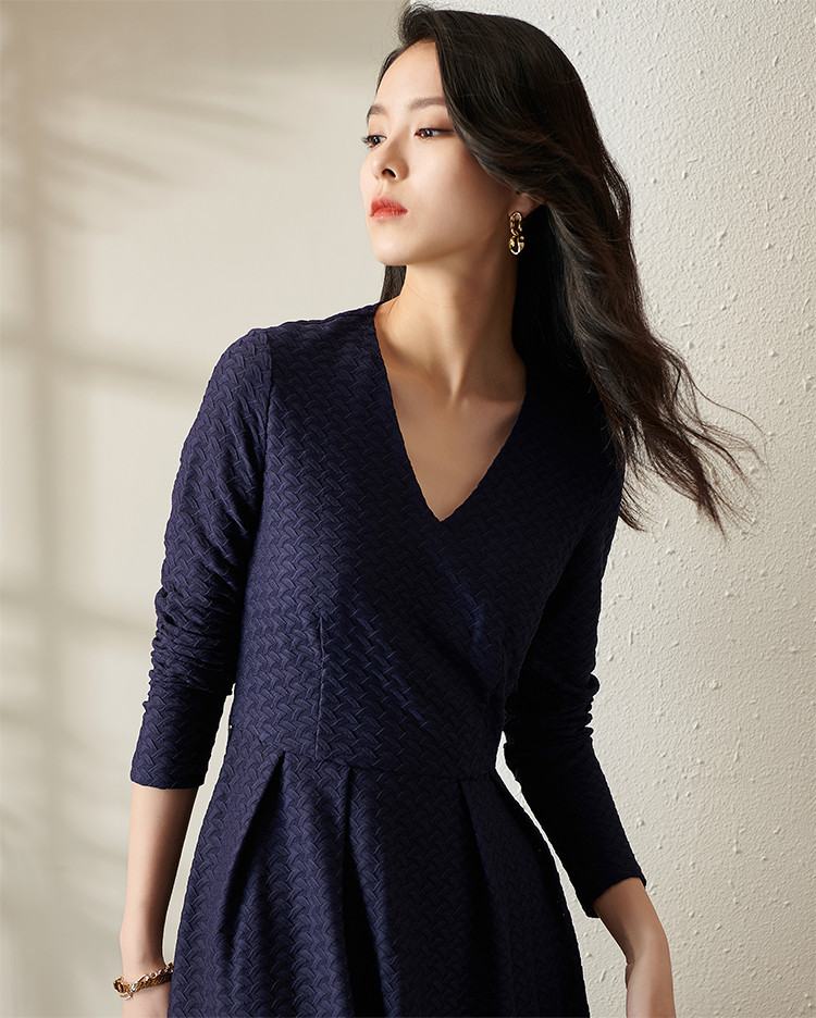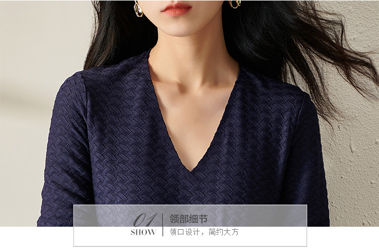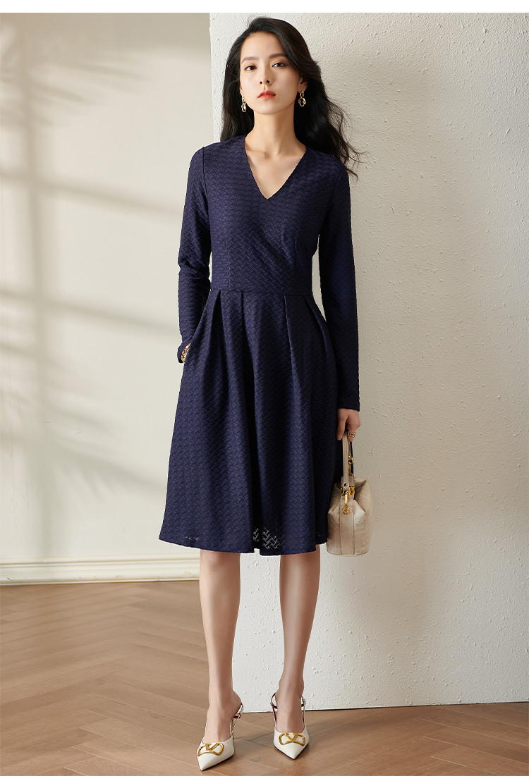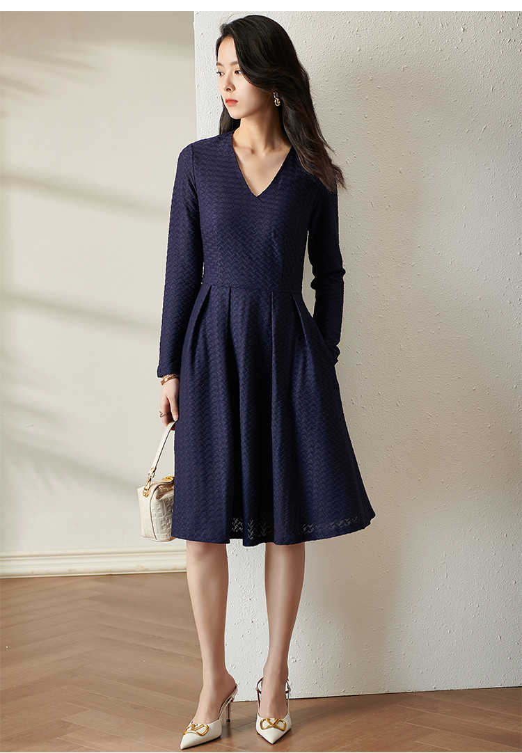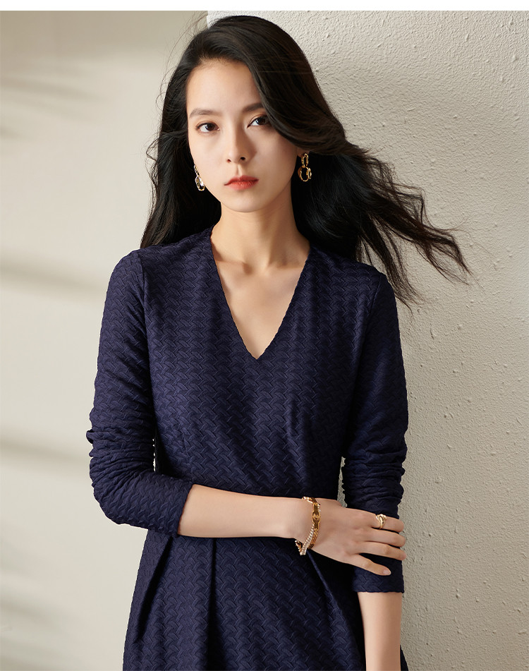 剩S 芳外透气梭织裙子2022新款秋季透气梭织花纹V领长袖连衣裙