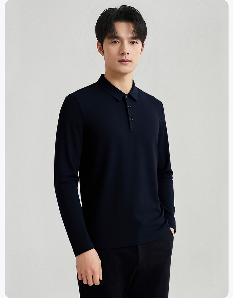 【含桑蚕丝】圣得西男士针织Polo衫2025秋弹力透气商务休闲长袖
