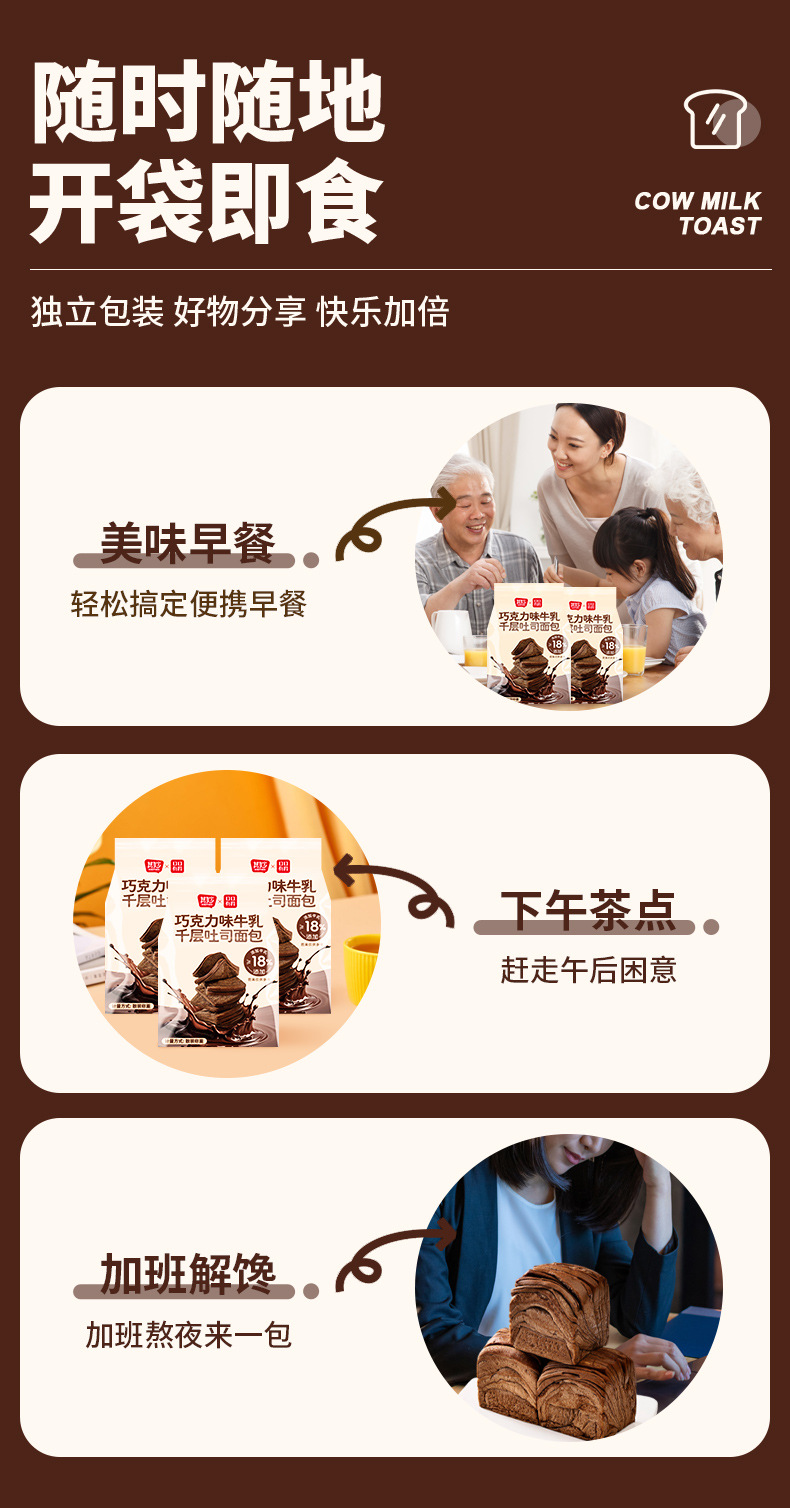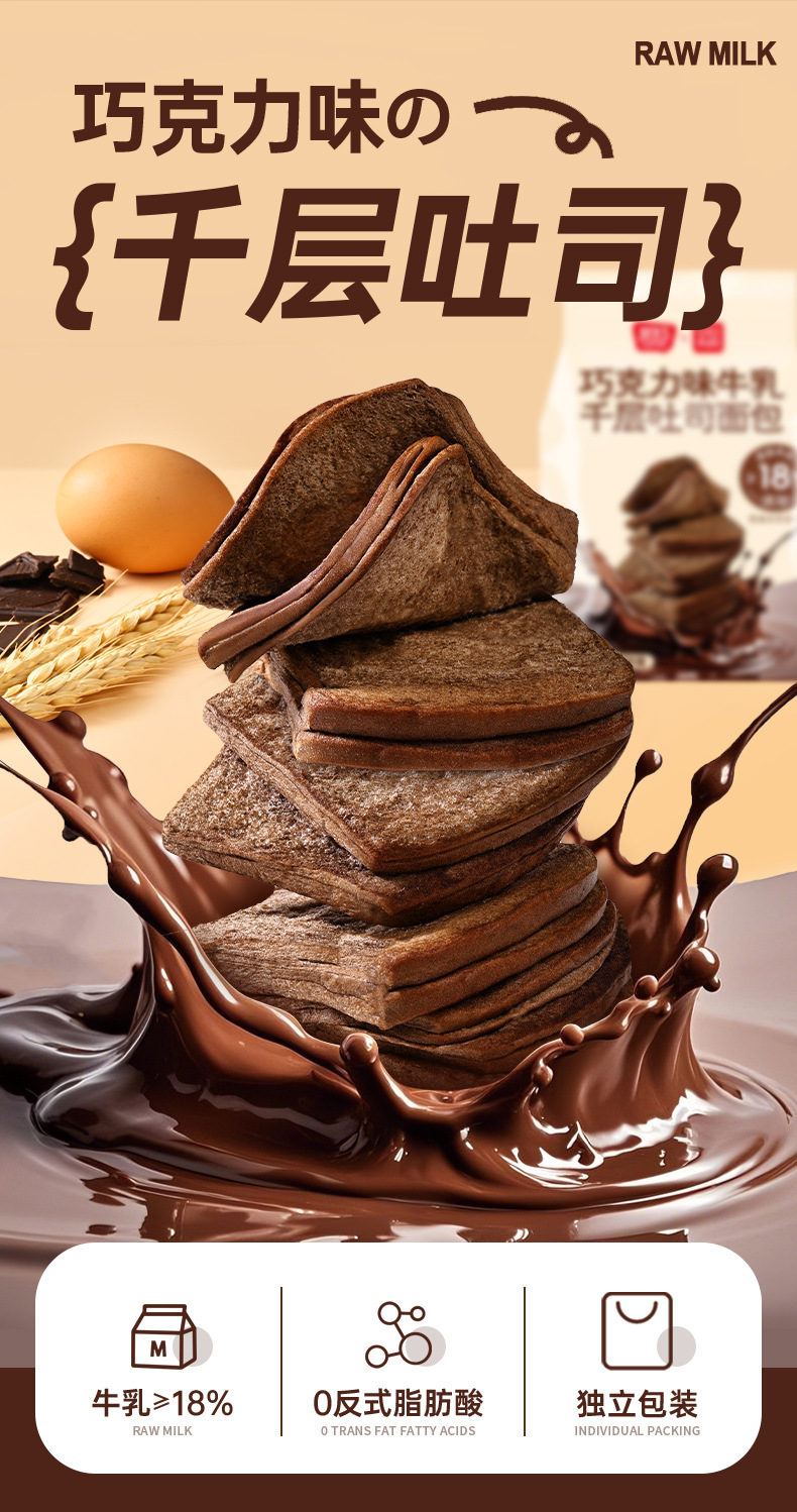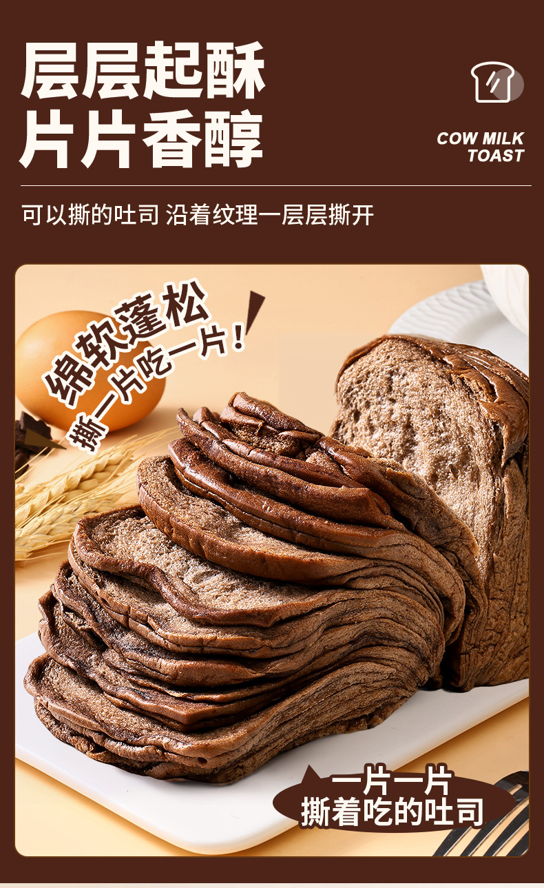 【醇厚牛乳香❗️巧克力千层吐司】甄选品质原料制作,特别添加牛乳≥18%,层层酥软奶香四溢,巧克力风味醇厚不腻,早餐代餐下午茶休闲茶点心小吃解馋饱腹代餐零食L