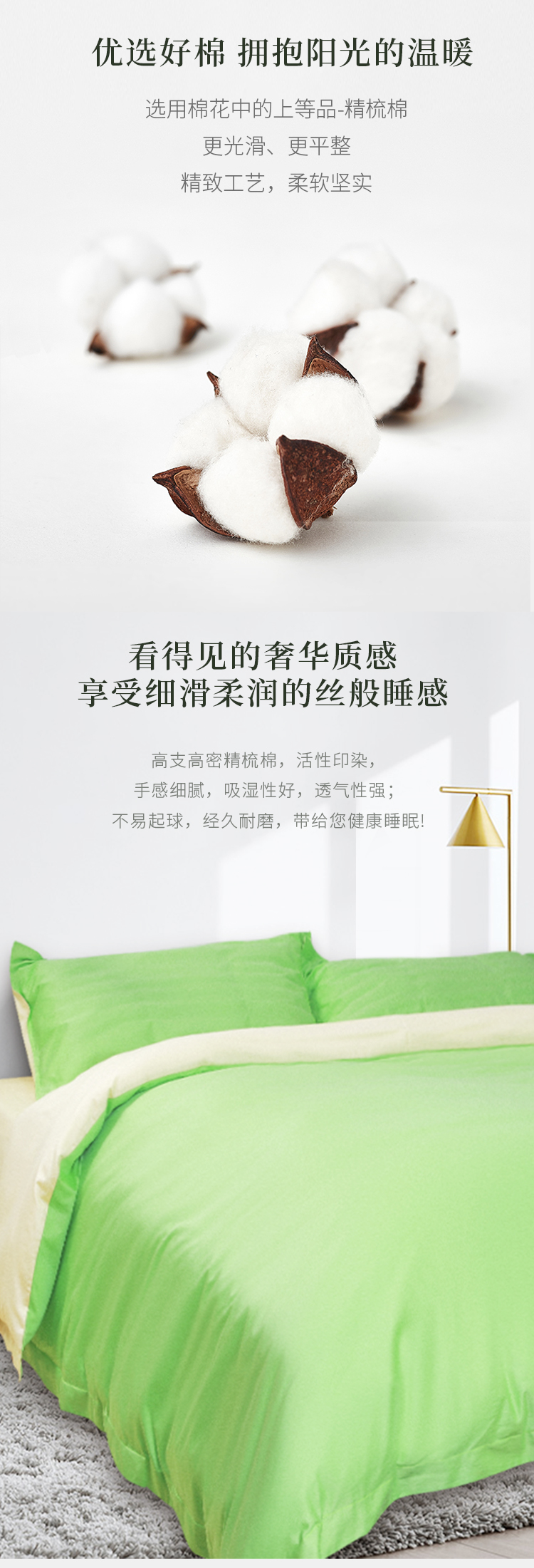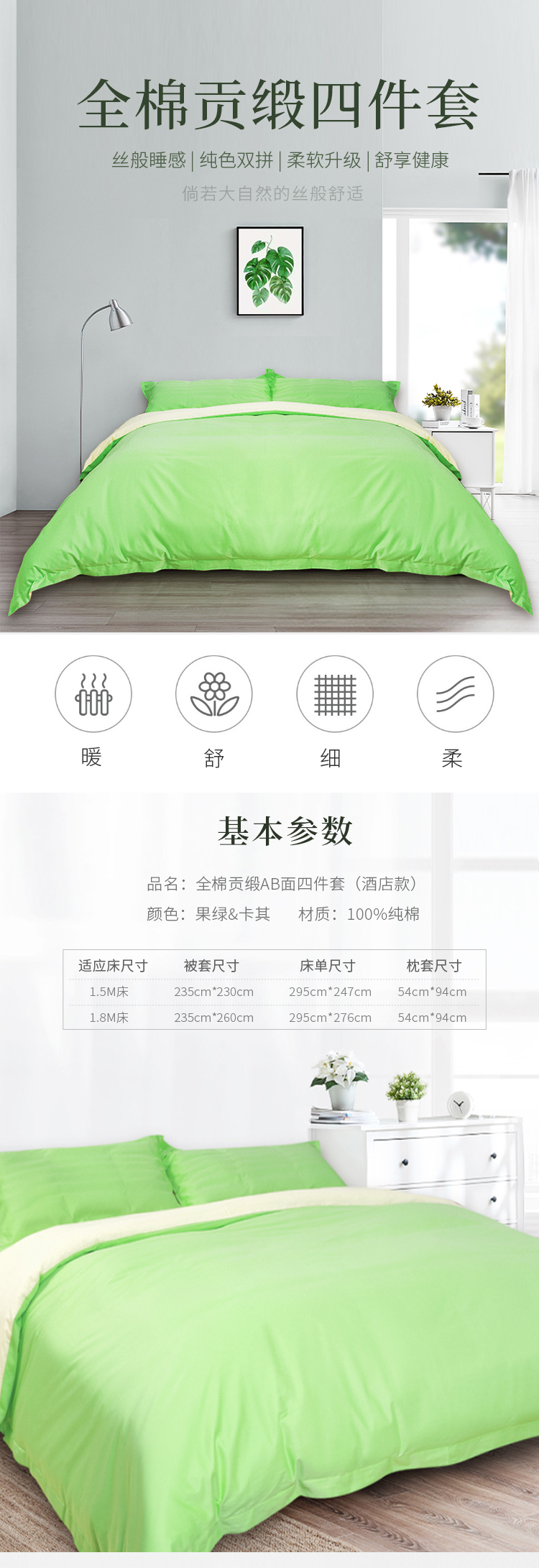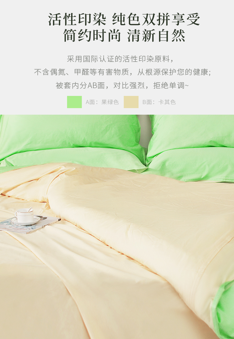 维也纳定制 | AB面全棉贡缎四件套 果绿色/卡其色(尺寸可选)