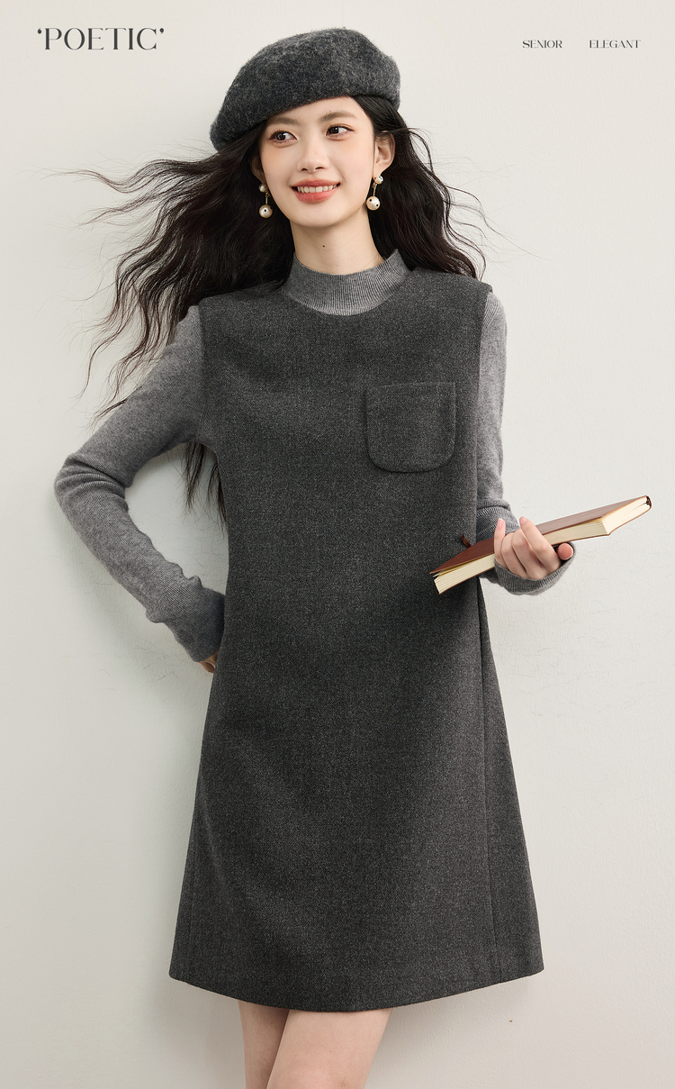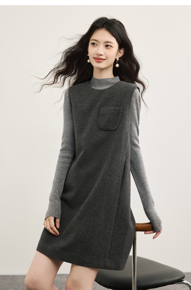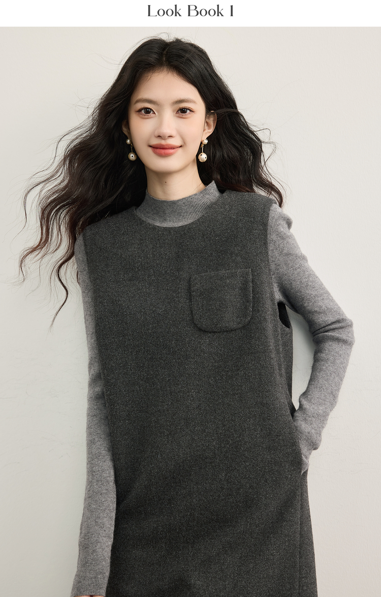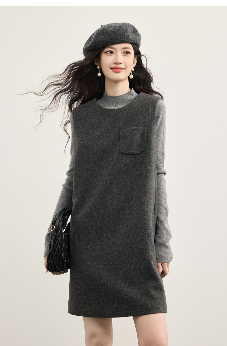【10/15新品】熙世界格雷穿搭毛呢背心连衣裙女2025年秋冬新款直筒无袖马甲裙子