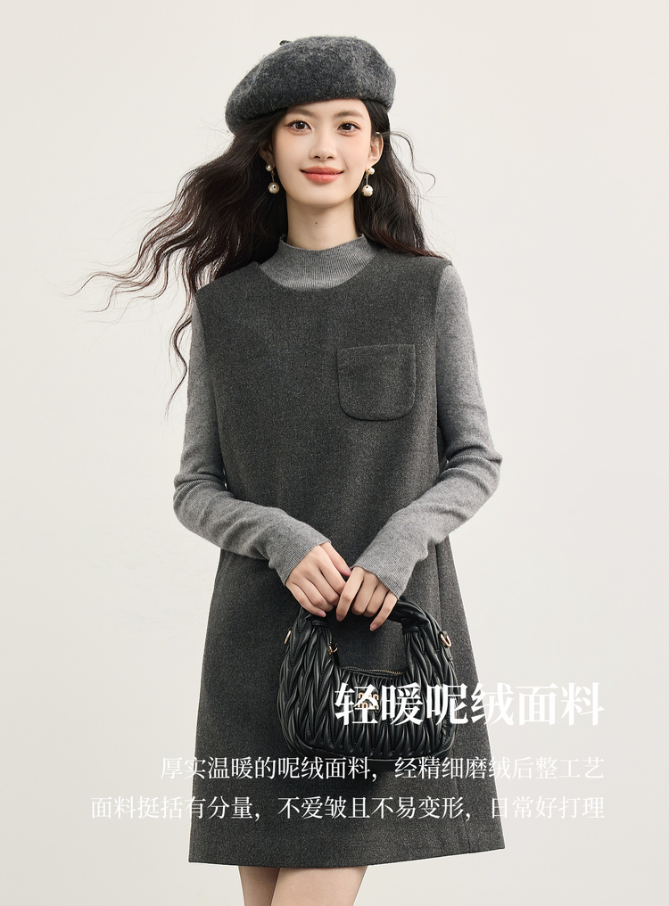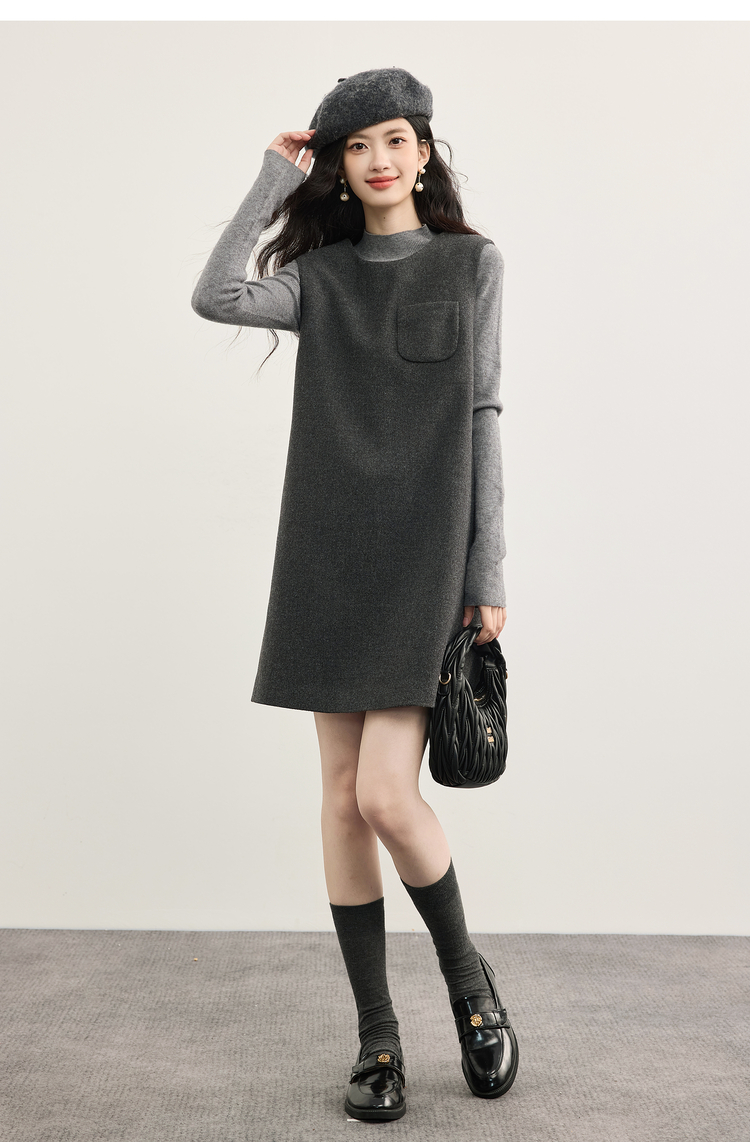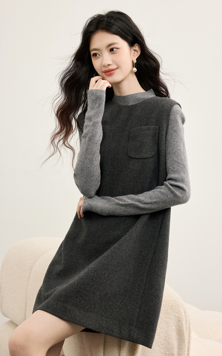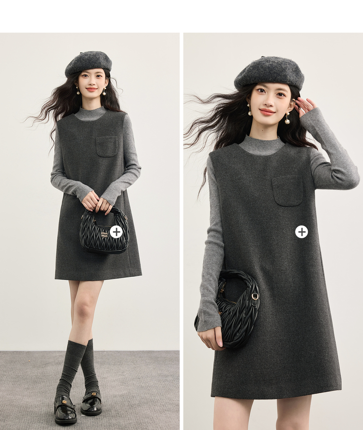 【10/15新品】熙世界格雷穿搭毛呢背心连衣裙女2025年秋冬新款直筒无袖马甲裙子