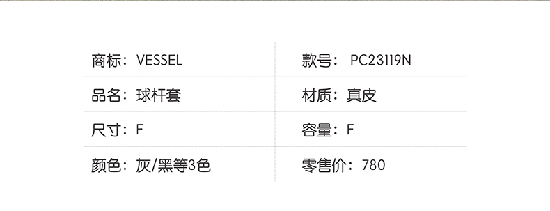 「特价」VESSEL 高尔夫L型绒布球杆保护套