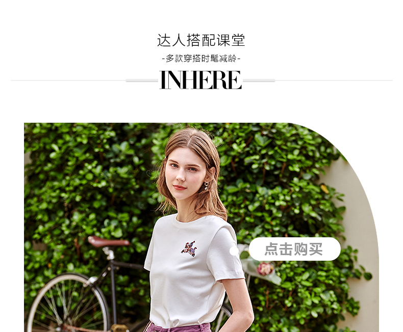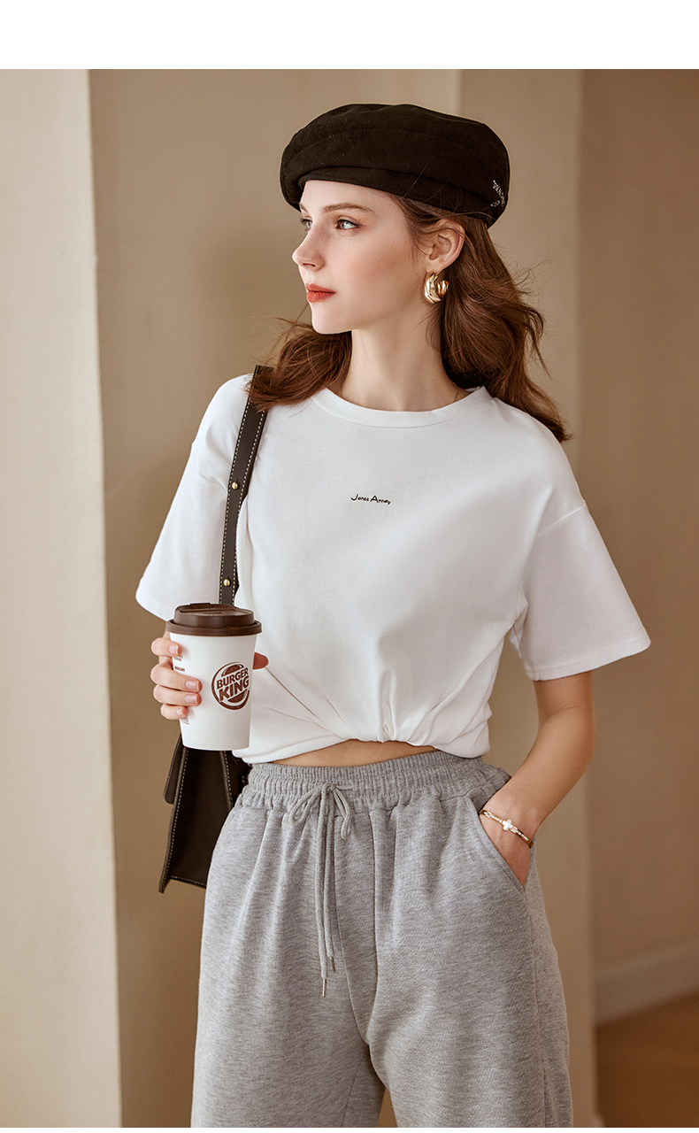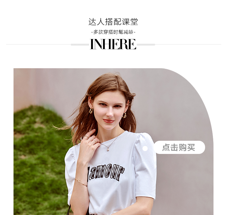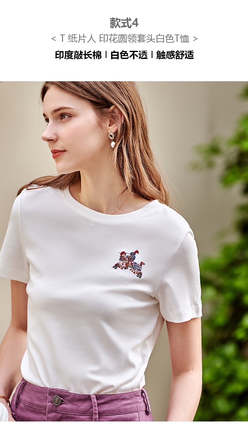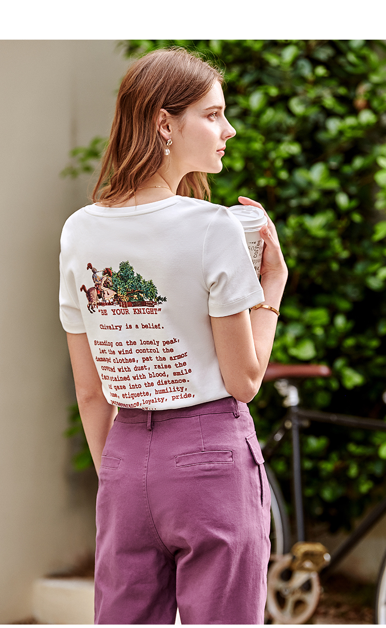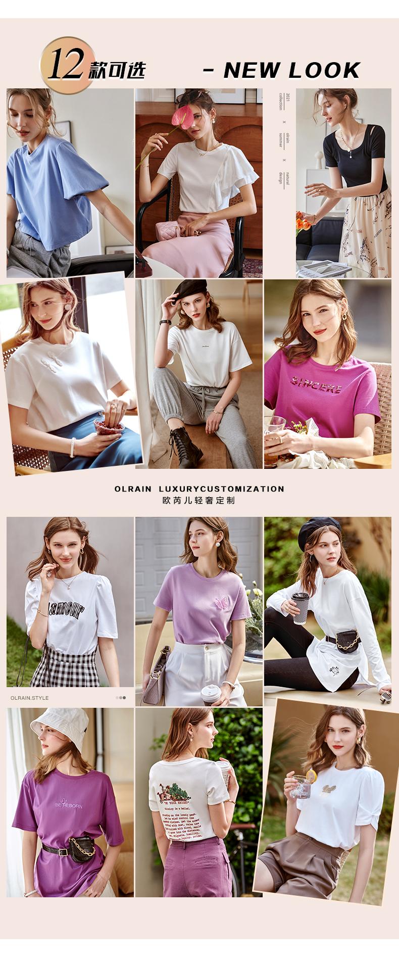 欧芮儿白色短袖t恤女早春2024新款宽松时尚气质印花别致纯棉上衣