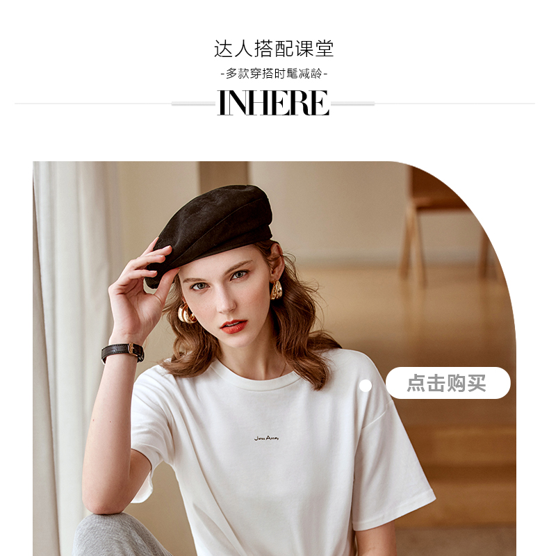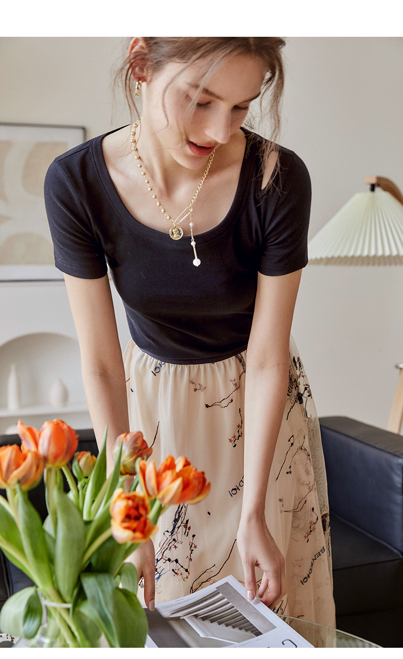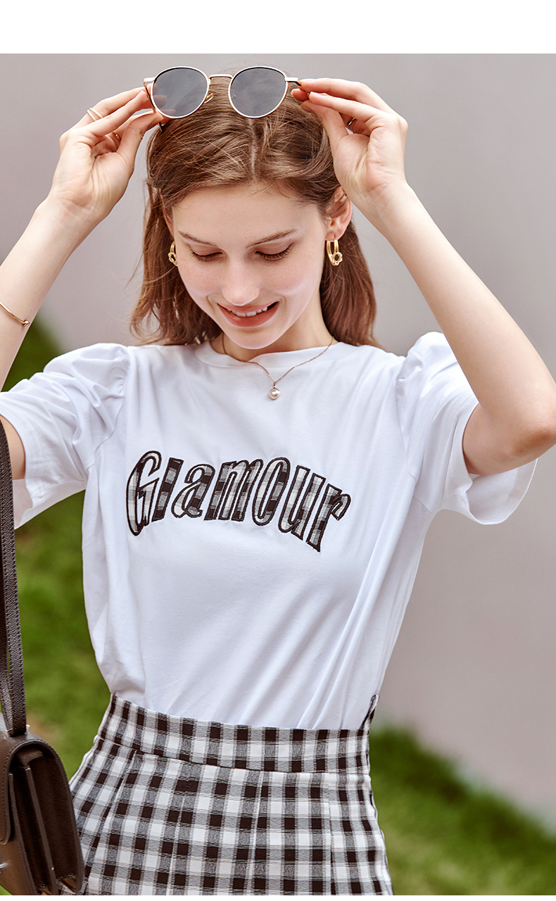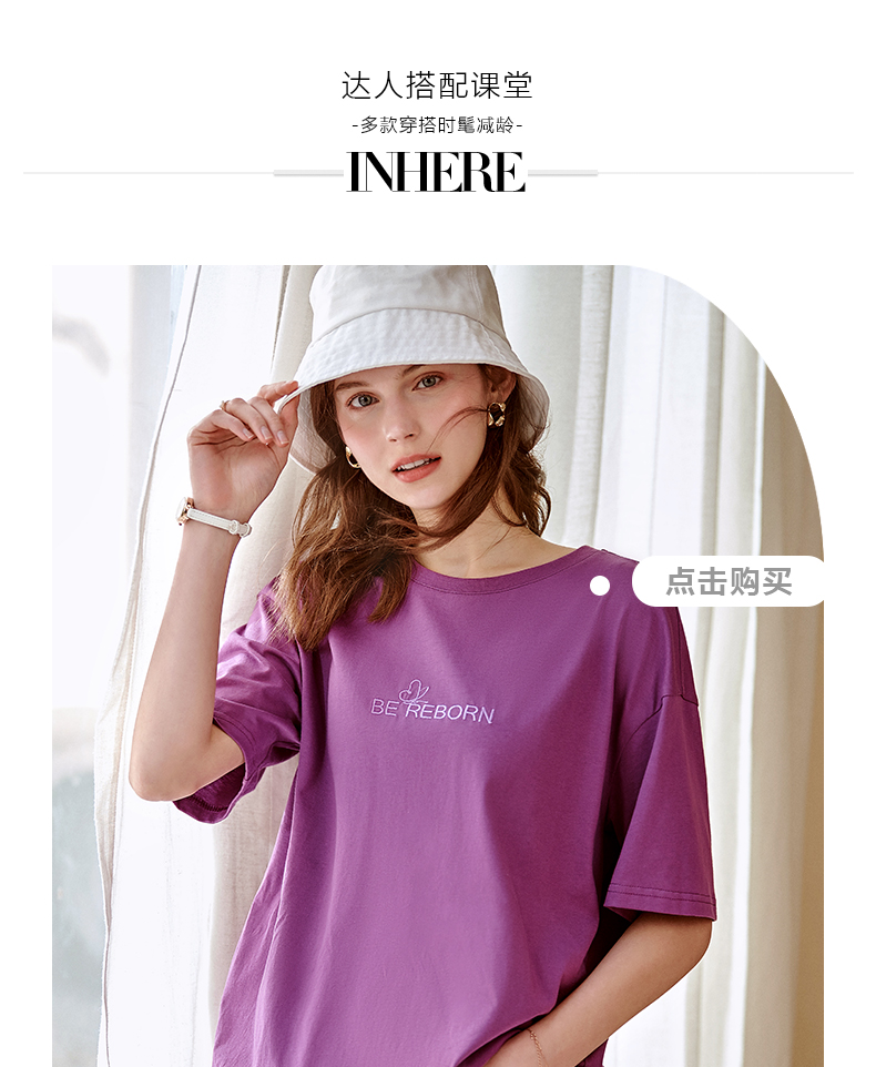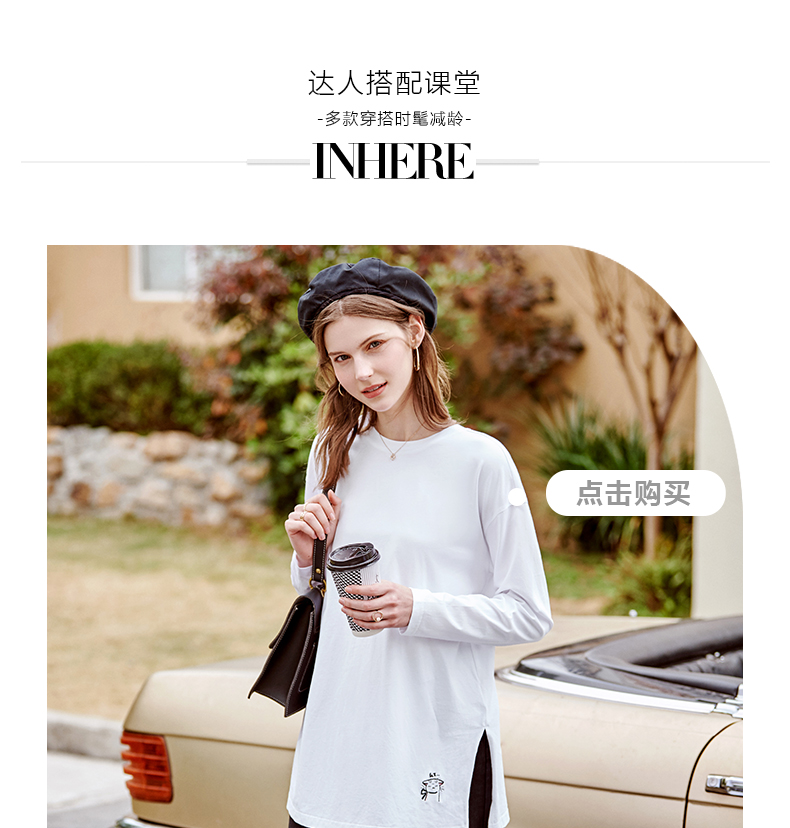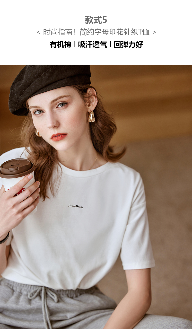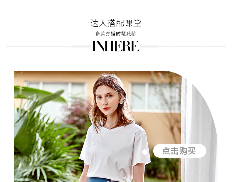 欧芮儿白色短袖t恤女早春2024新款宽松时尚气质印花别致纯棉上衣