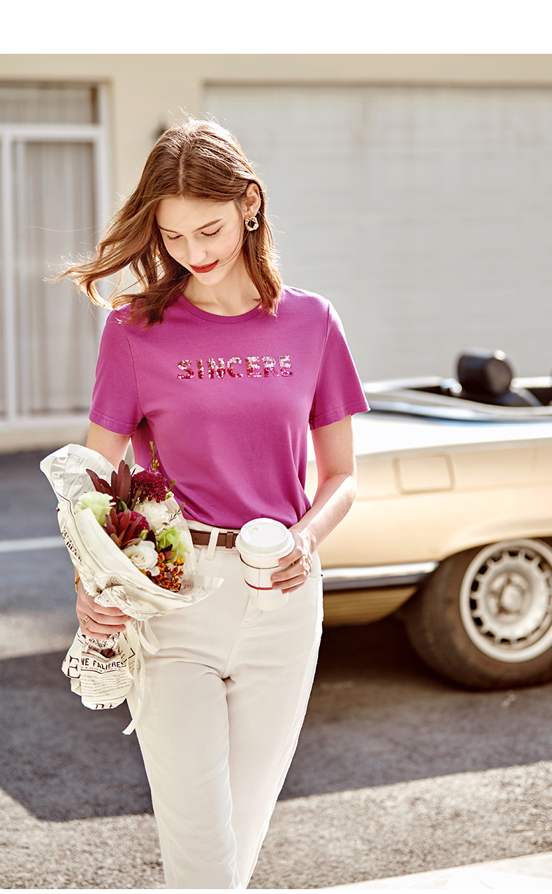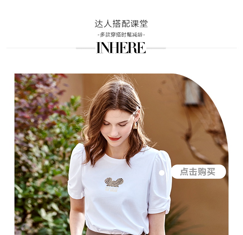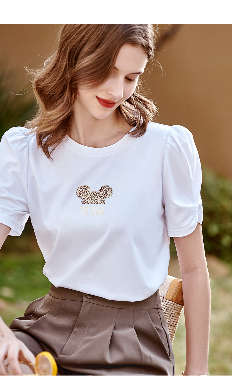 欧芮儿2025夏季新款创意珠片绣短袖卡通图案T恤女休闲宽松上衣