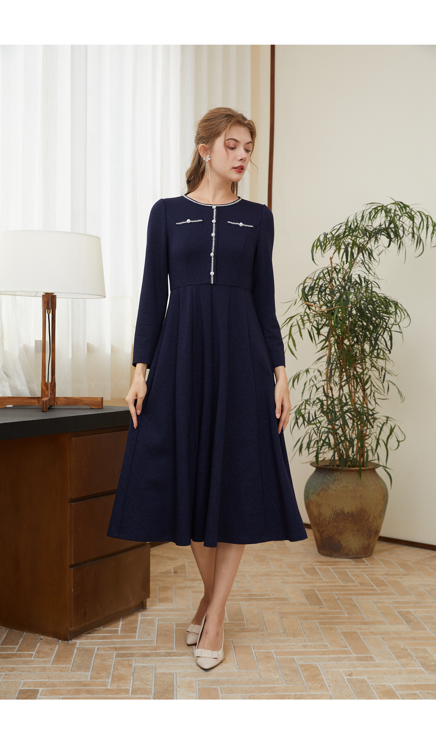 司歌长袖连衣裙优雅收腰秋冬女A921050X
