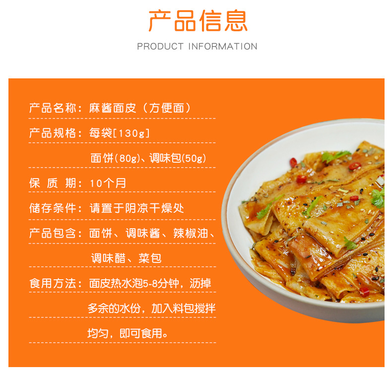 麻酱面皮130克/袋 擀凉皮拌面 免煮 方便面 铺盖面 即食 泡面 麻酱 速食 包邮