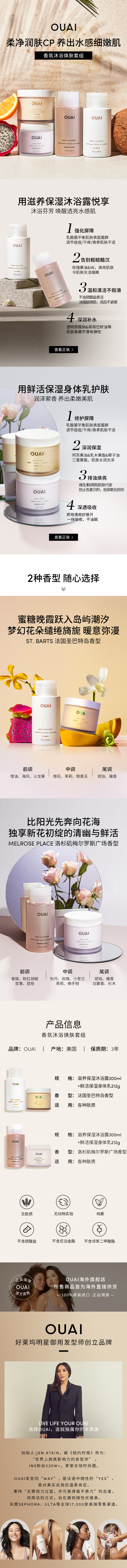保税直发 OUAI 滋养保湿沐浴露 300mL+鲜活保湿身体乳 212g 法国圣巴特岛香型/洛杉矶梅尔罗斯广场香型