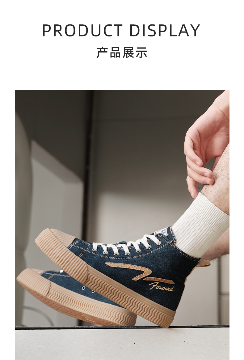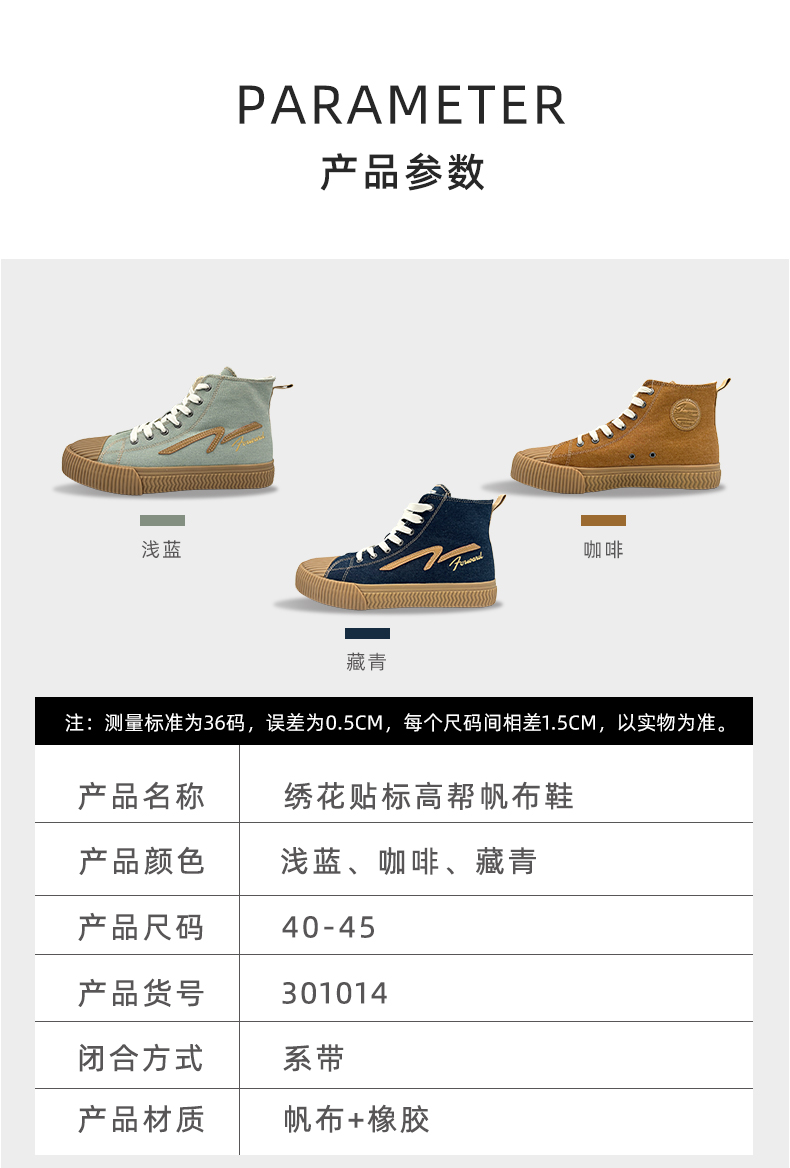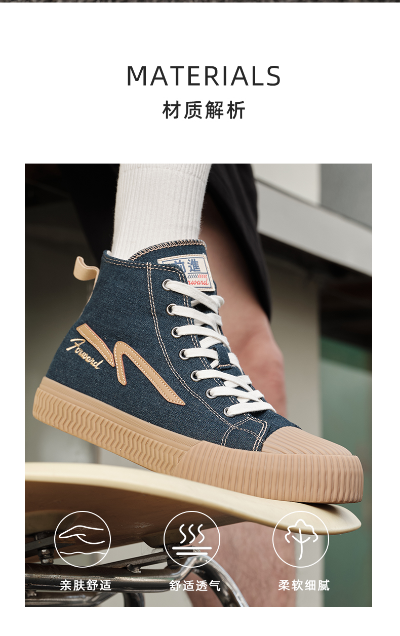 前进 绣花贴标高帮帆布鞋-L