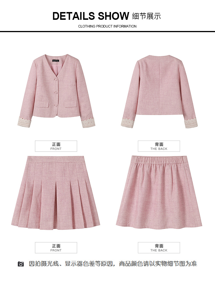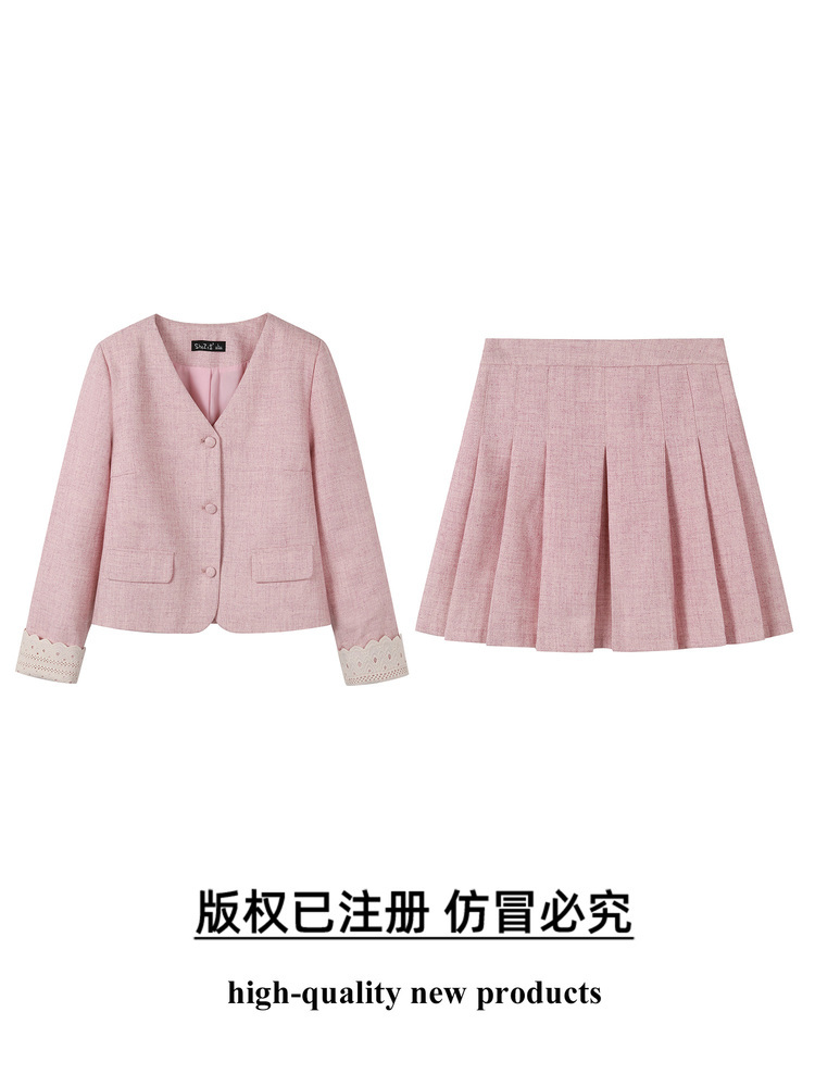 奢姿大码女装2025秋季胖妹妹时尚蕾丝设计V领外套百褶裙两件套装9953990638AB