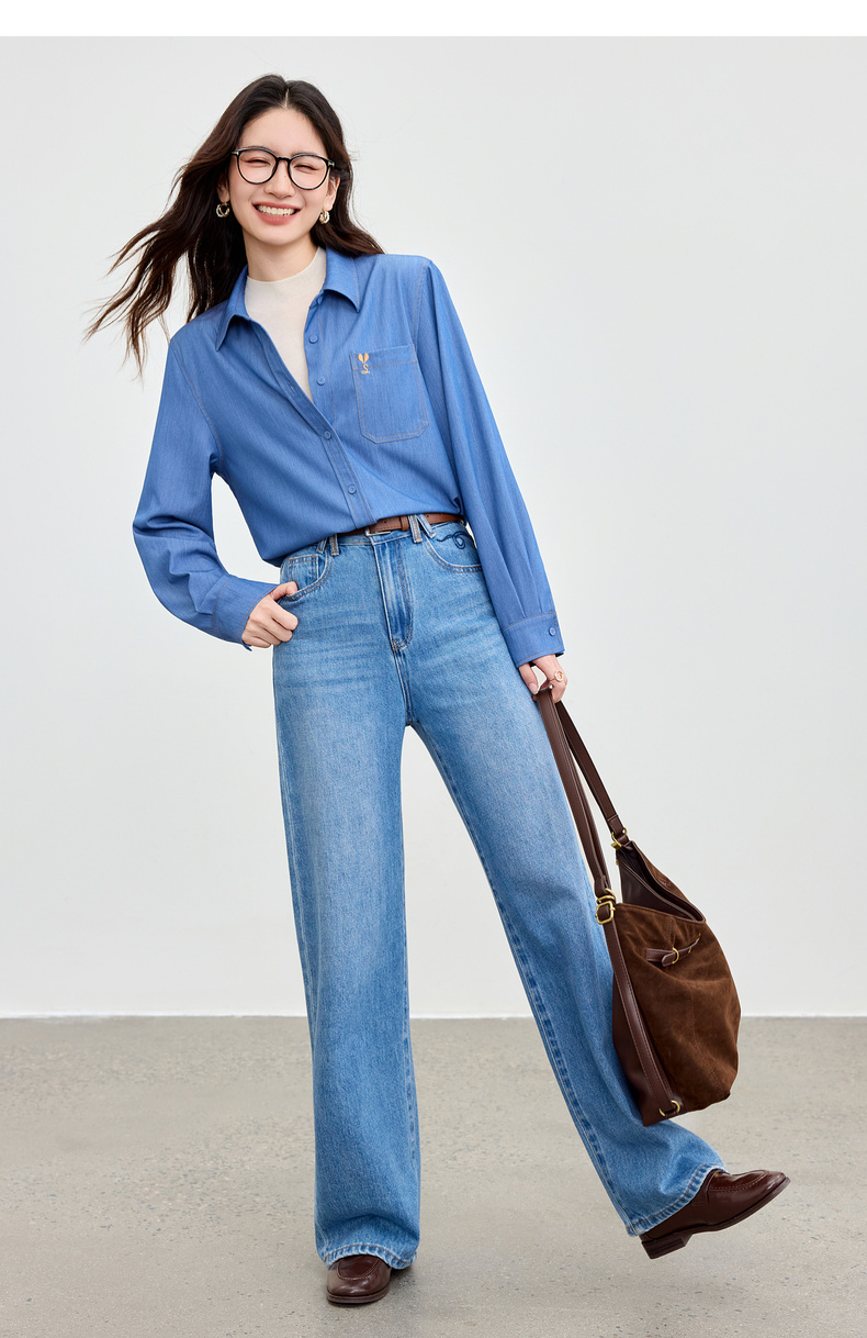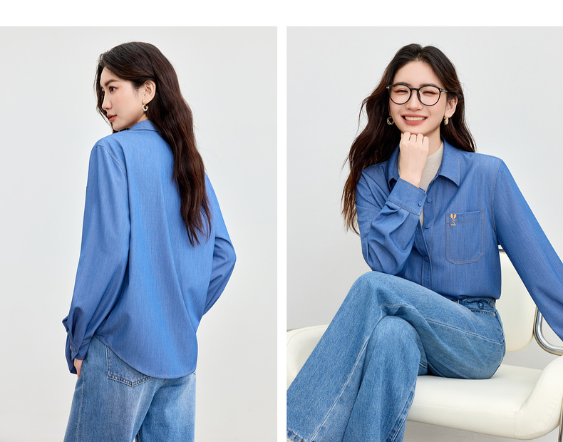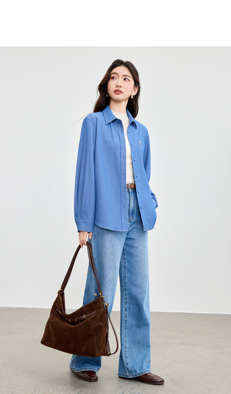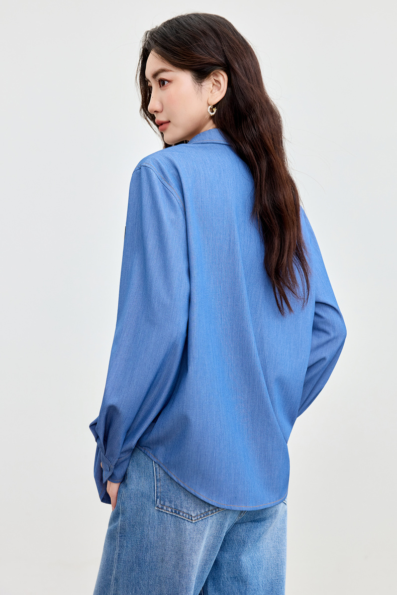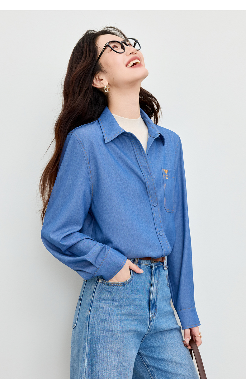 【内购】【撞色绣花】通勤翻领明线设计爱心字母图案宽松显瘦落肩袖衬衫-153CA2762