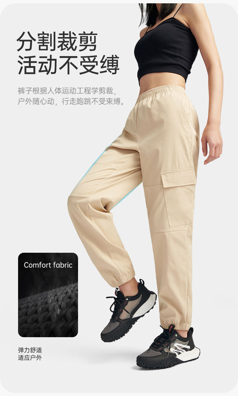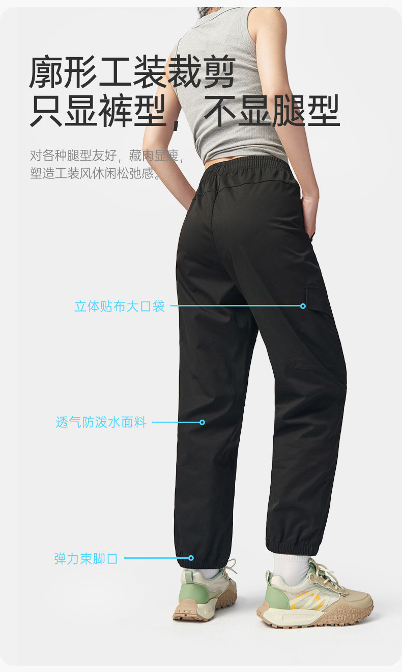 【88元秒杀 工装风】探拓户外休闲裤女春夏季休闲徒步直筒宽松束脚登山机能伞兵裤