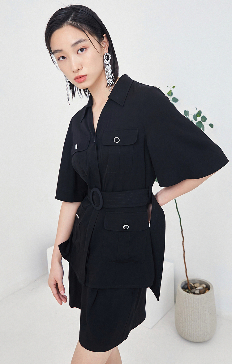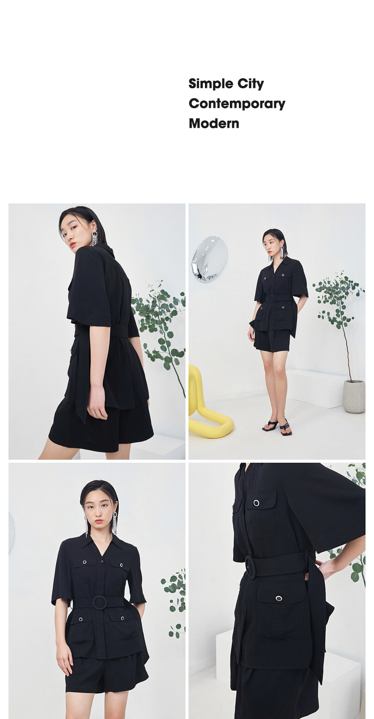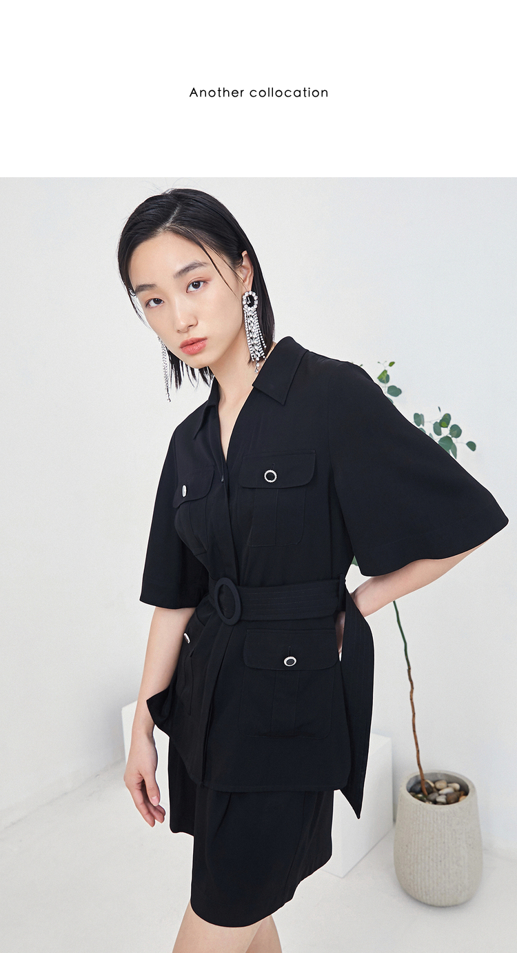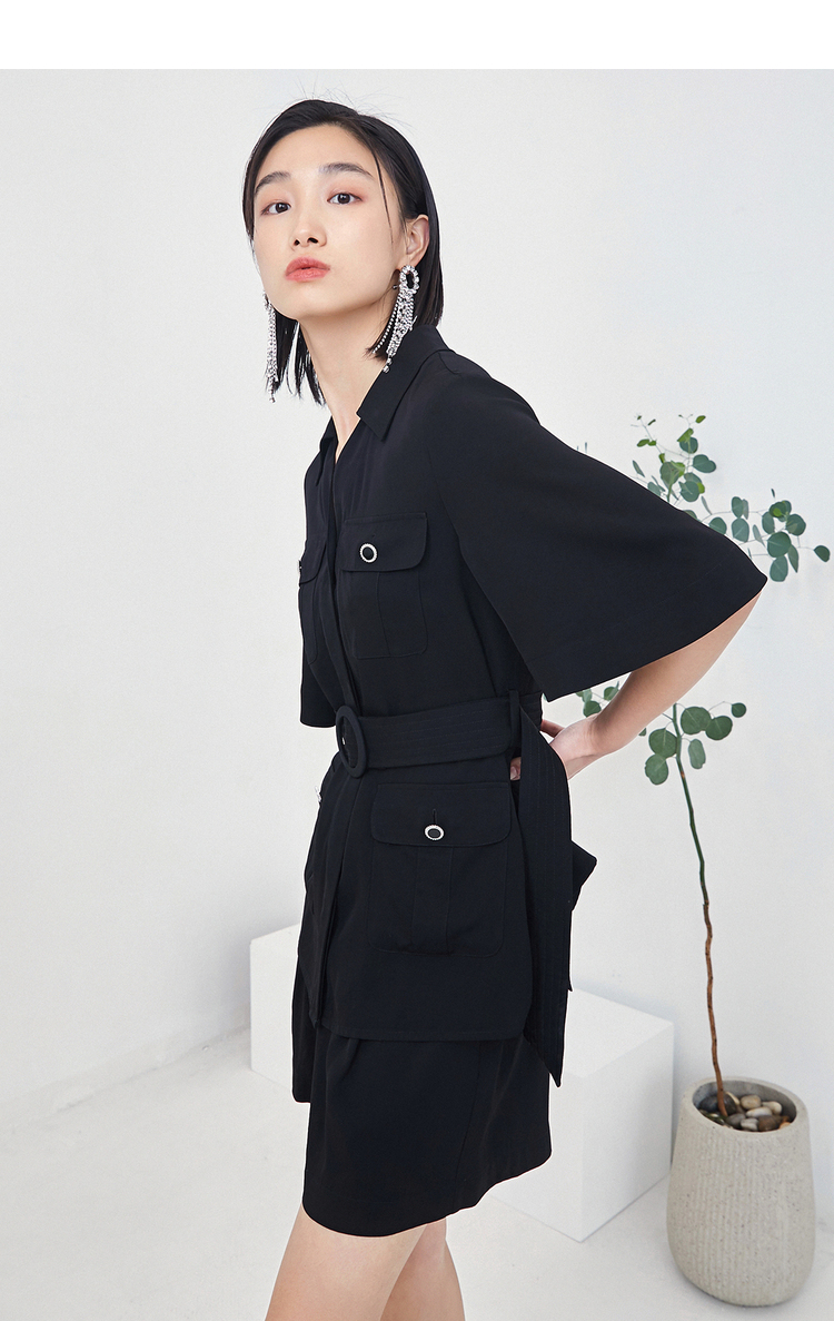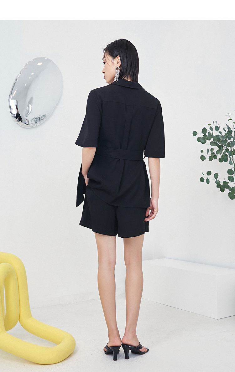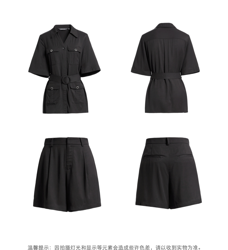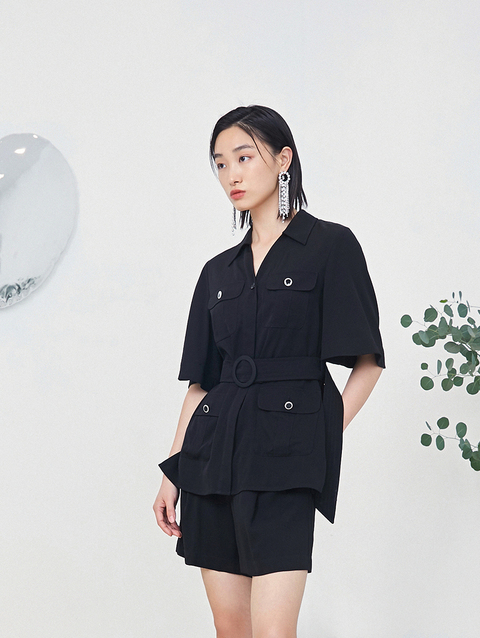 NEELLY纳俪商场同款时尚套装女夏季多口袋收腰系带衬衫休闲短裤N22044Z04419
