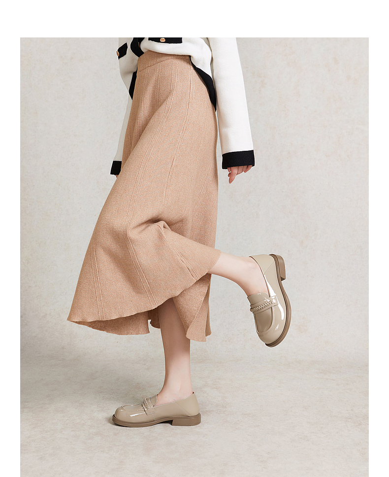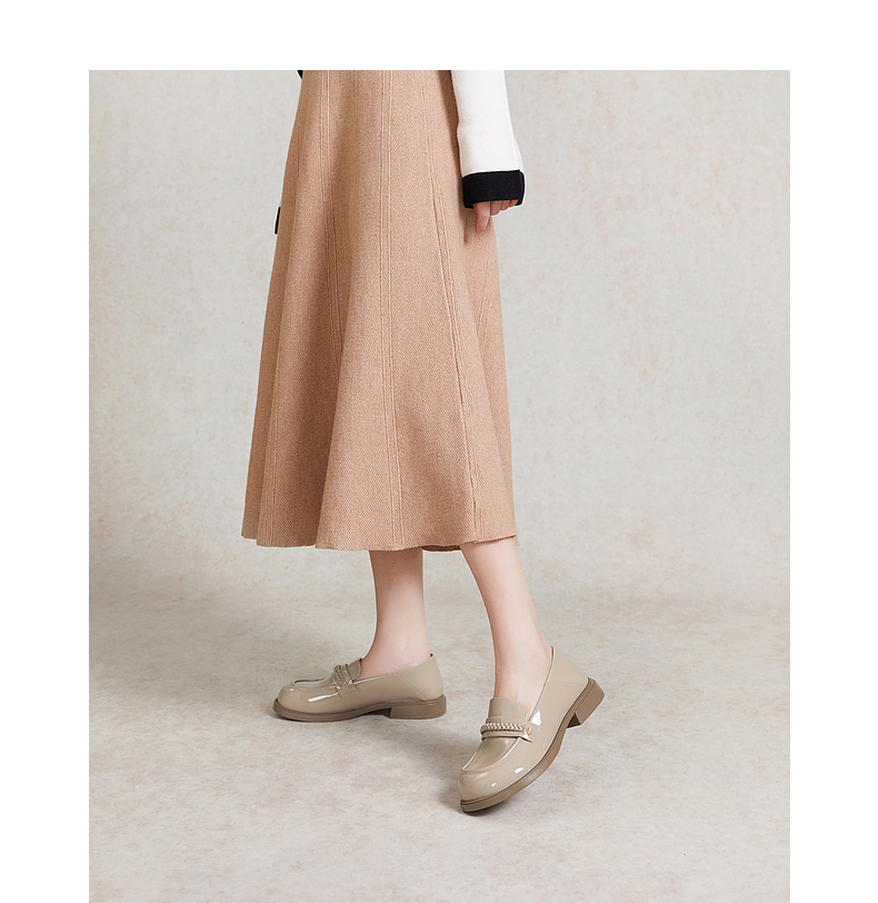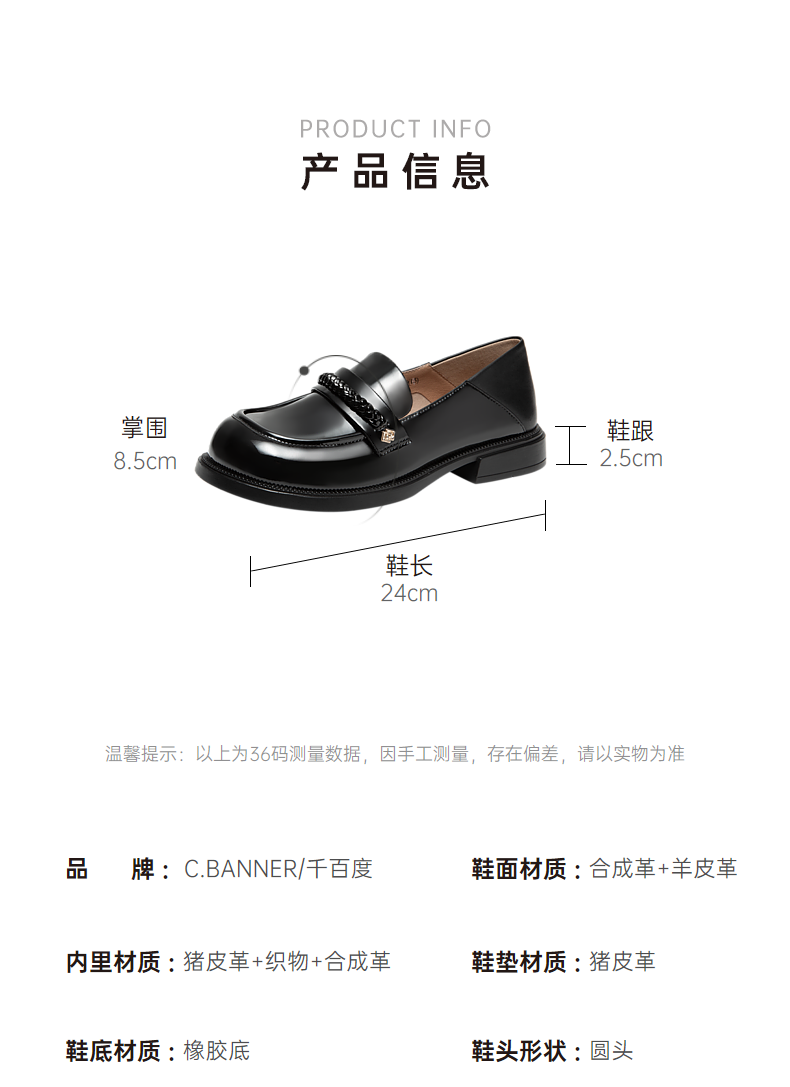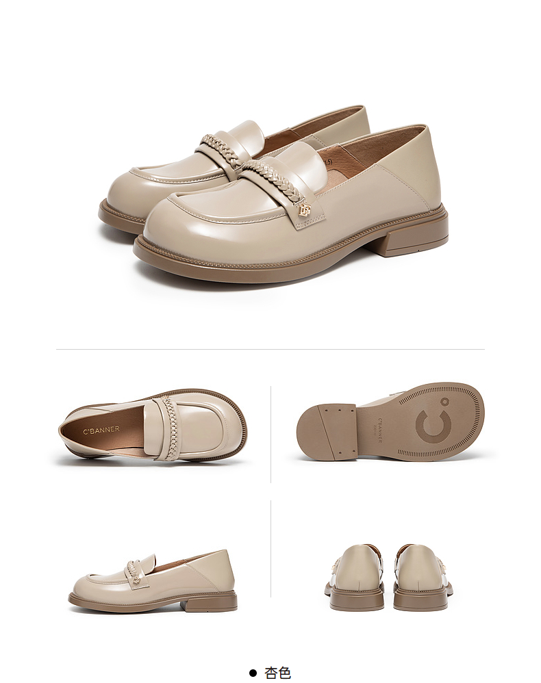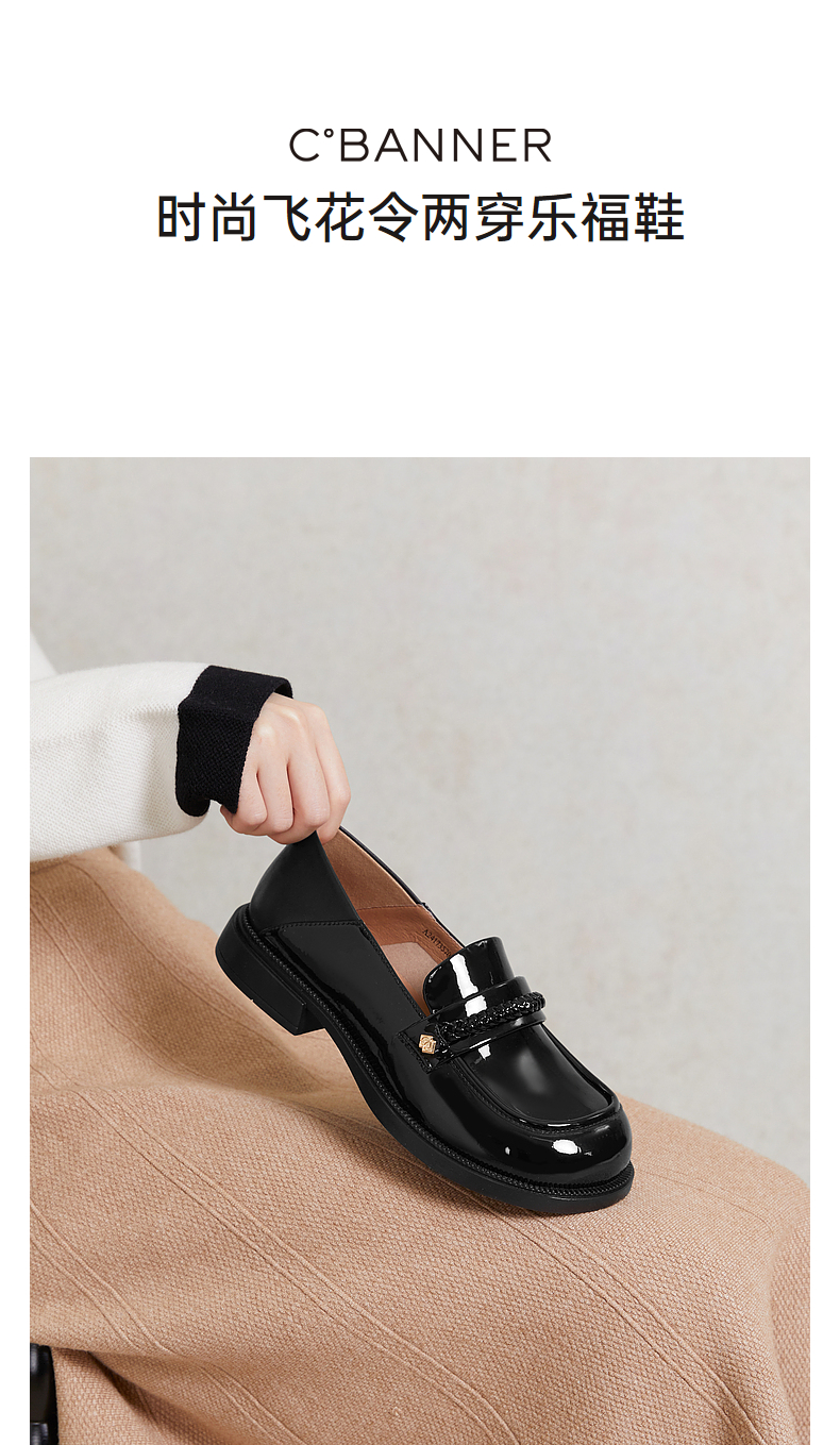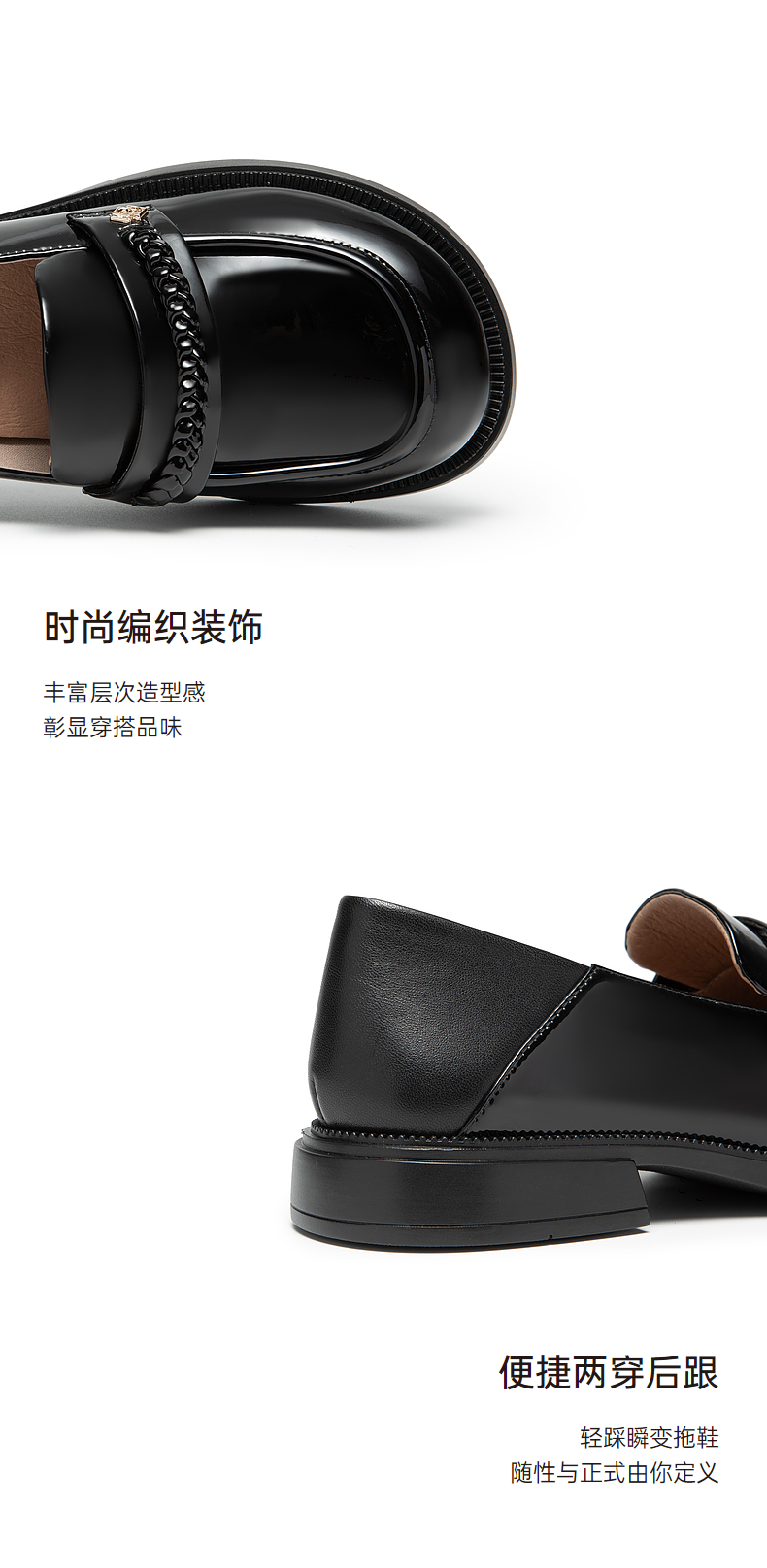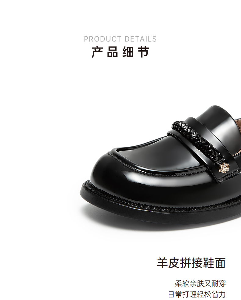 千百度羊皮通勤低跟乐福鞋女款秋季小皮鞋豆豆鞋平底单鞋A24455601
