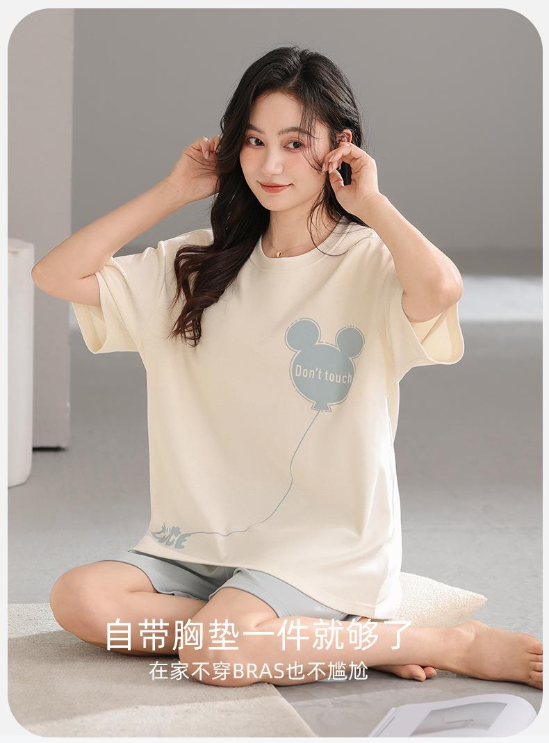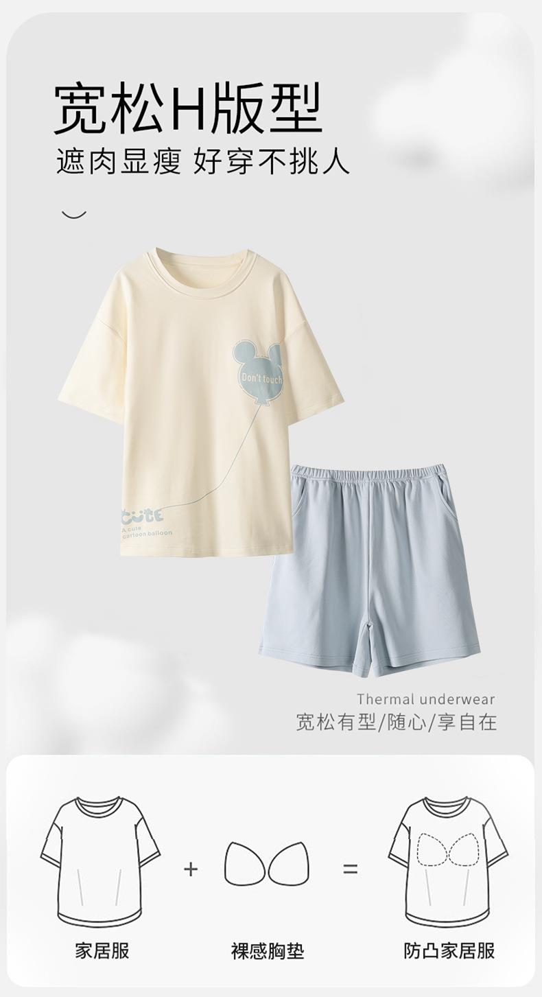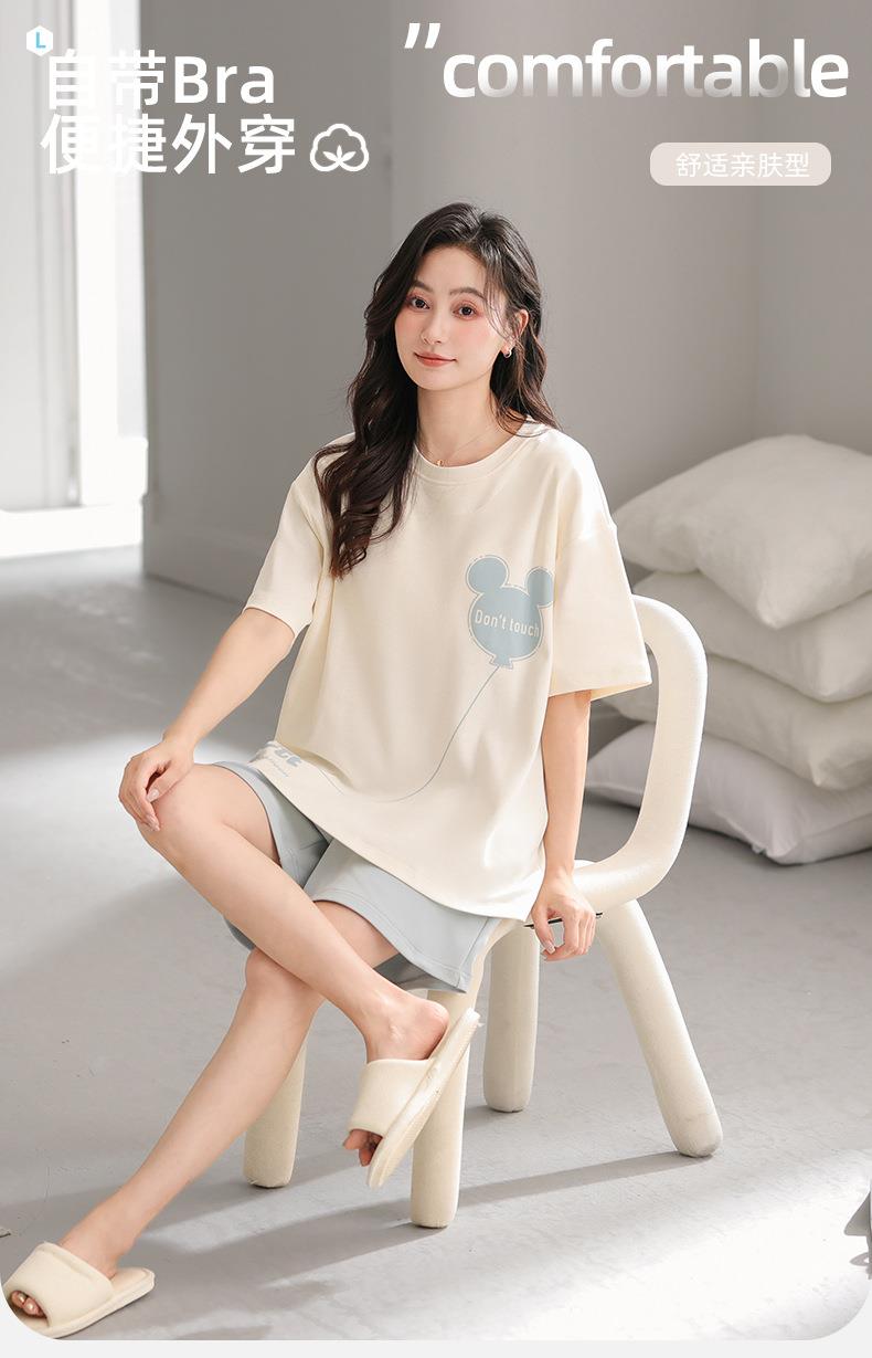 女款睡衣夏短袖新款女士夏季带胸垫一体家居服套装可外穿M-2XL★娃娃优选