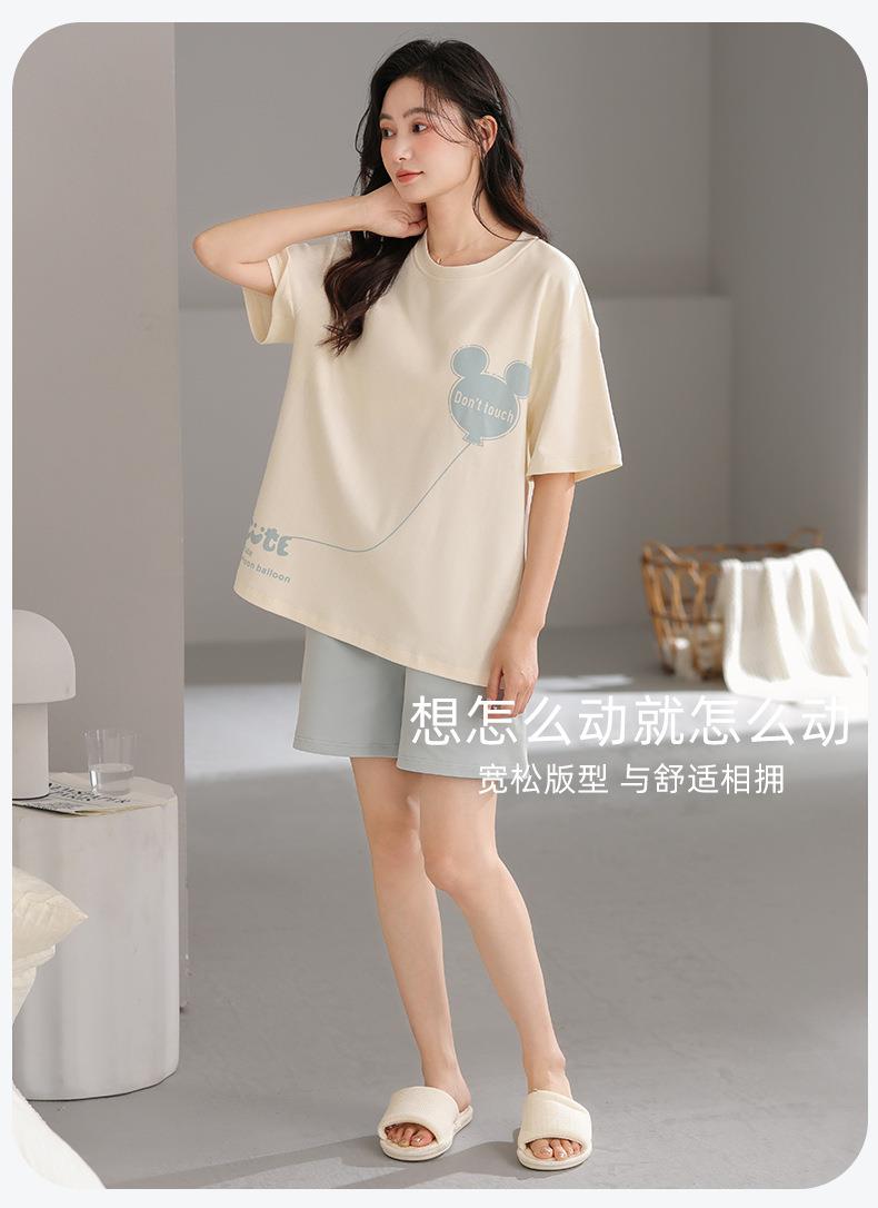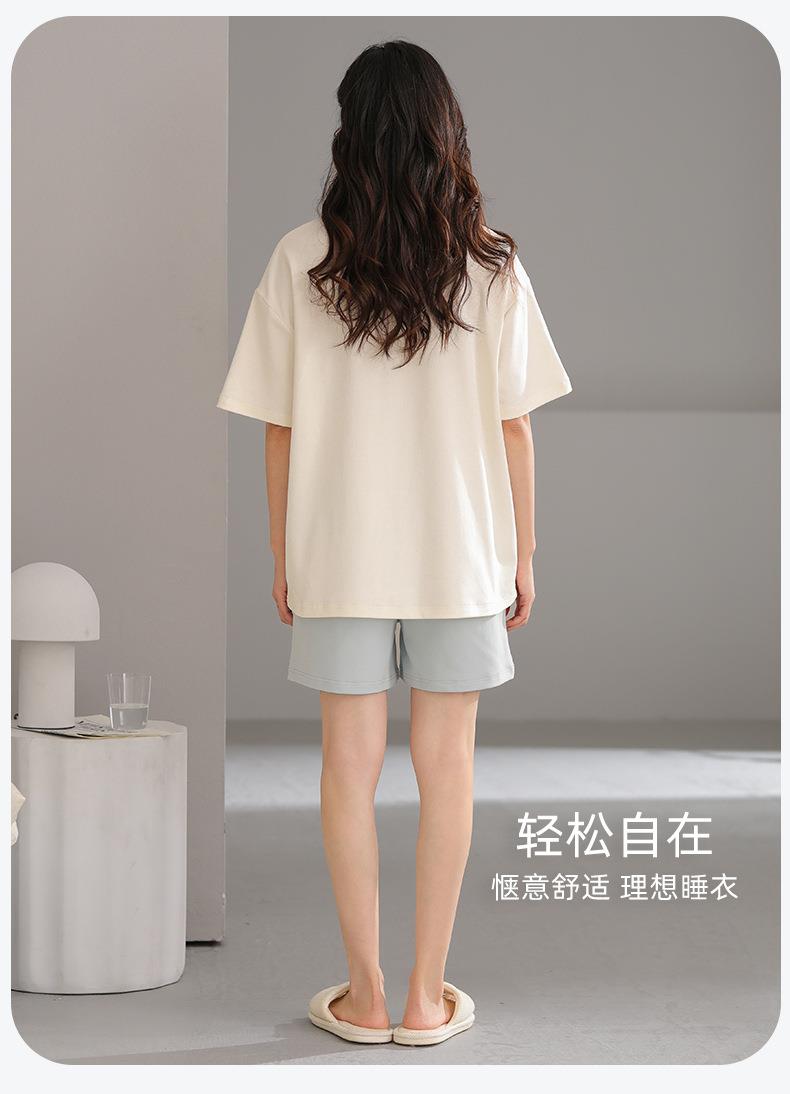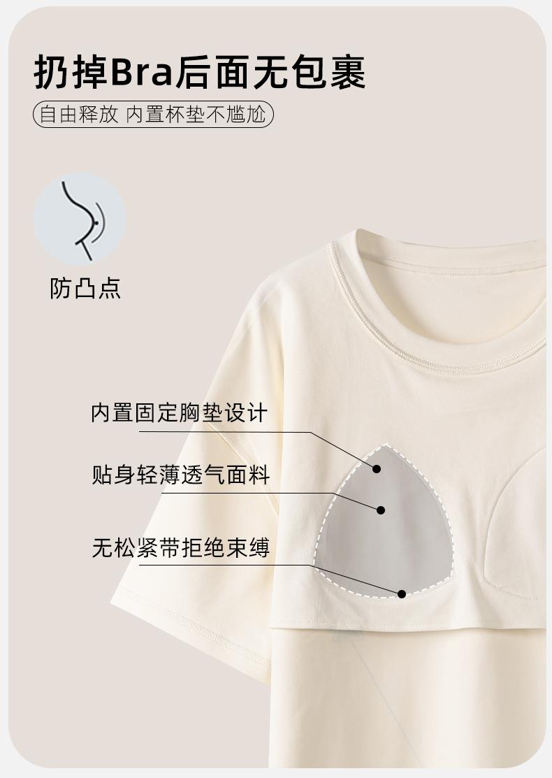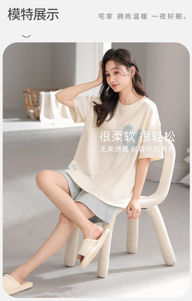 女款睡衣夏短袖新款女士夏季带胸垫一体家居服套装可外穿M-2XL★娃娃优选