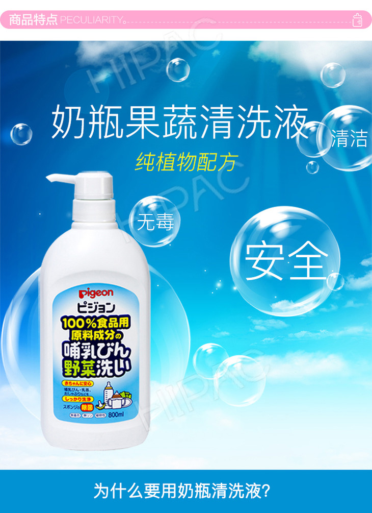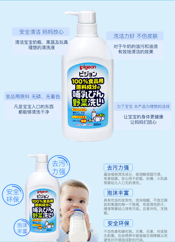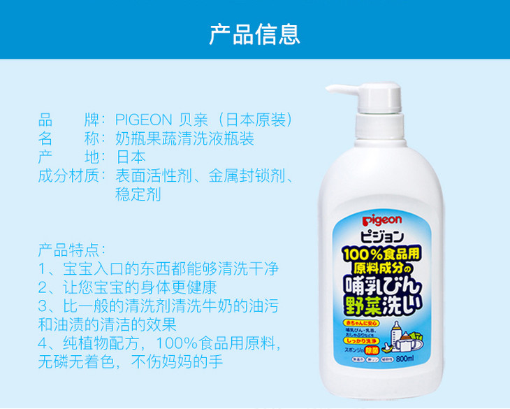 【一般贸易】日本贝亲Pigeon 奶瓶果蔬清洗液 800ml