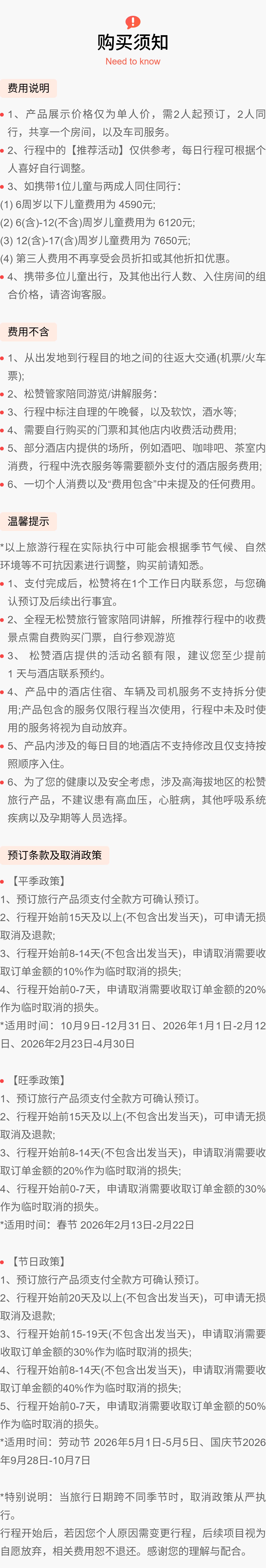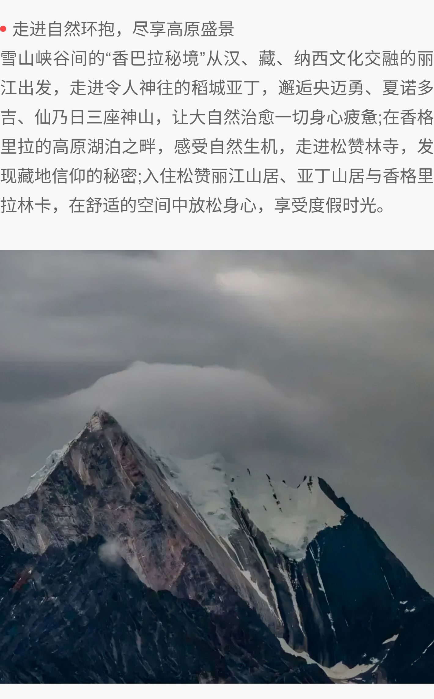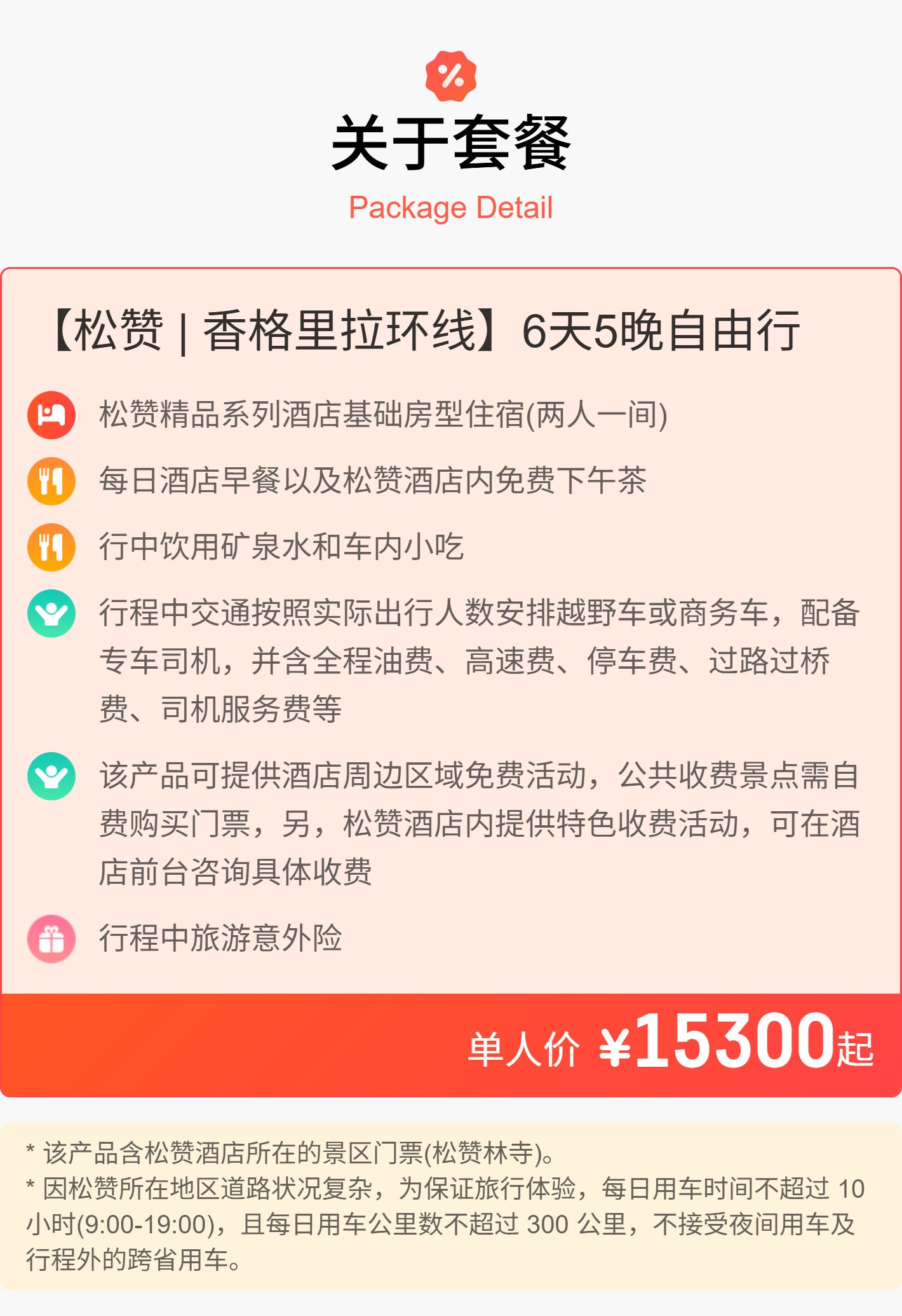 6天5晚【寻找香格里拉线路自由行】走进自然环抱,尽享高原盛景,探寻雪山峡谷间的“香巴拉秘境”,独立成团,自主规划每日活动,房+车自由行~
