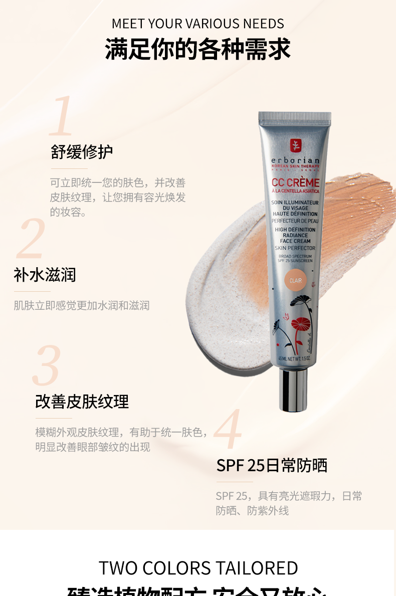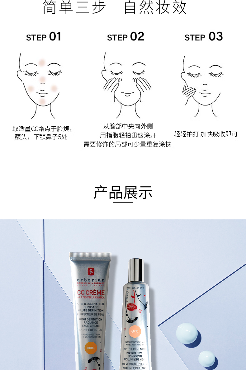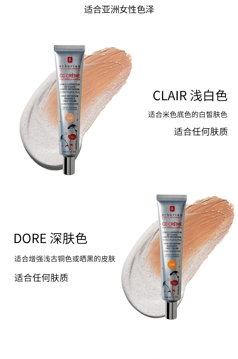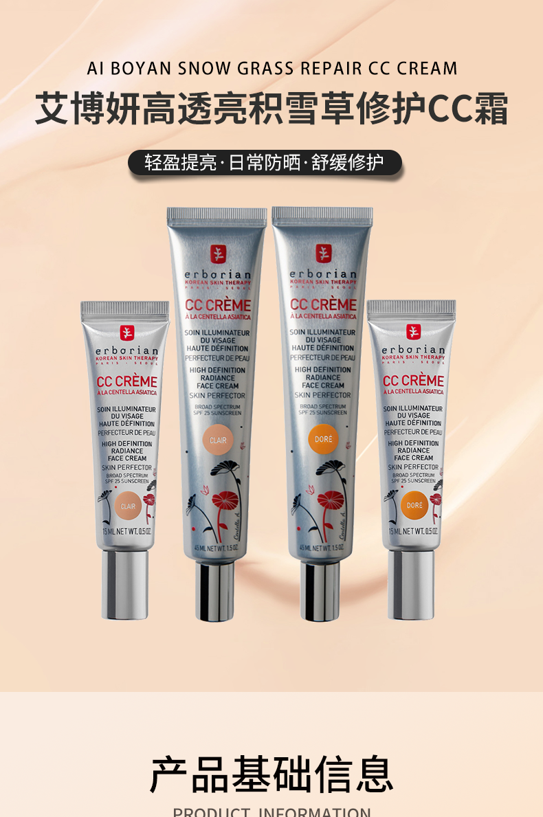 艾博妍积雪草修护CC霜15/45ml 轻盈提亮遮瑕