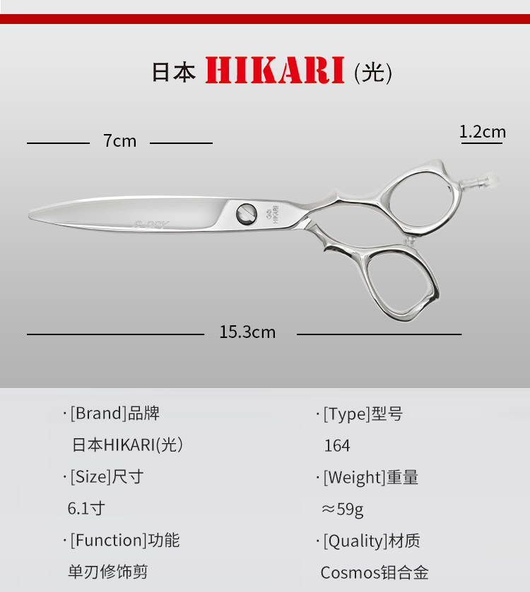 HIKARI光剪B-DRY COSMOS 164 锋利/ 平剪/全手型剪/日式/柳叶剪滑刀/胖胖/纹理/ 专业滑剪 6.1寸/
