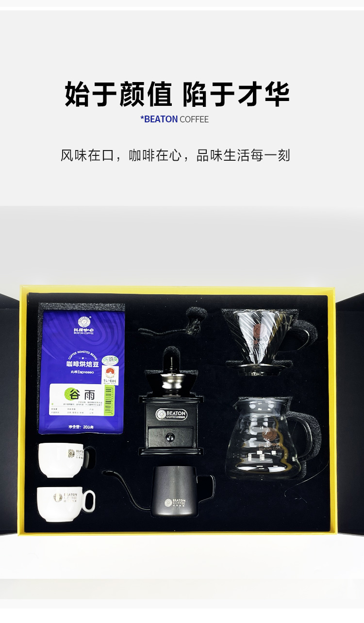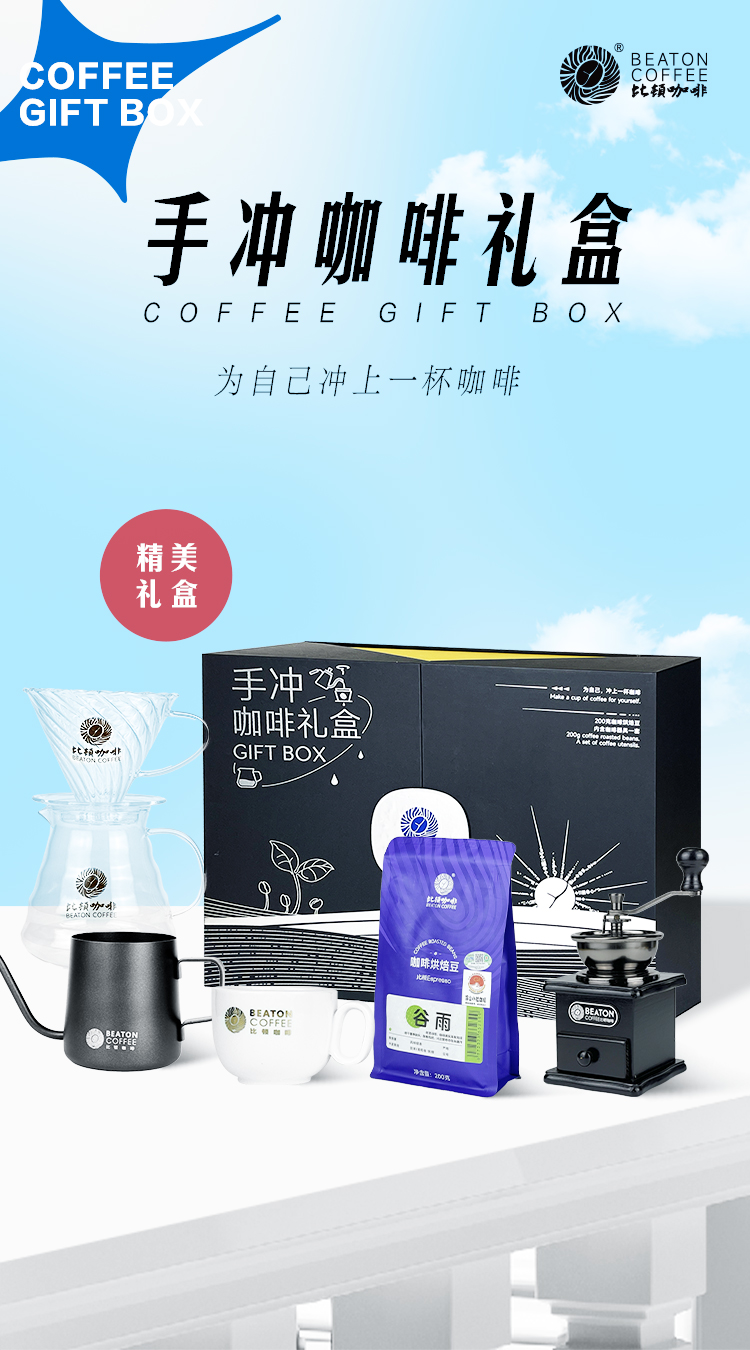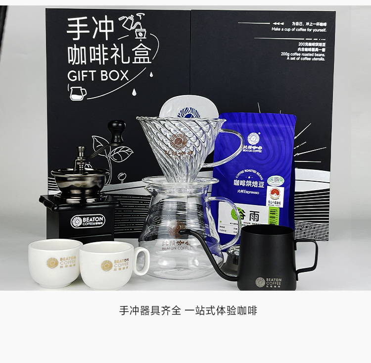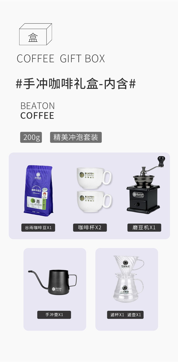 比顿手冲咖啡礼盒手摇磨豆机器具+咖啡豆送礼 200克/盒