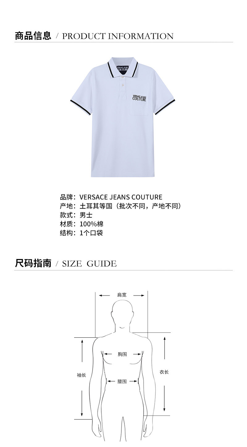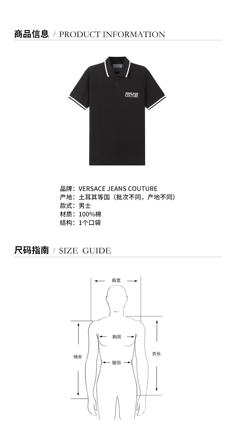 VERSACE JEANS COUTURE范思哲【22春夏新款】男士Iconic Logo系列棉质短袖POLO衫 72GAGT02 CJ01T