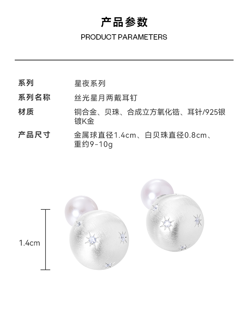 ARSIS|星夜系列 丝光星月两戴耳钉