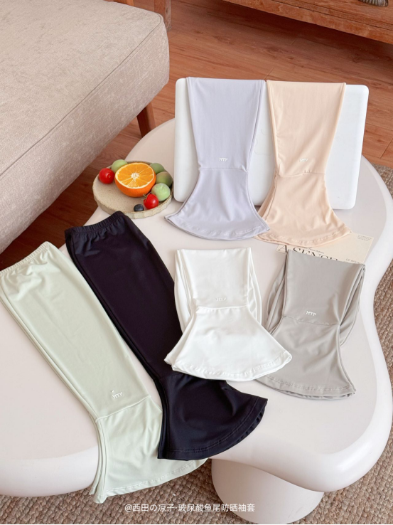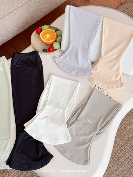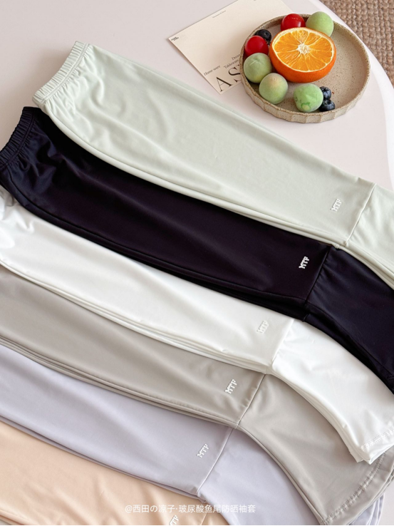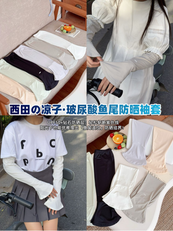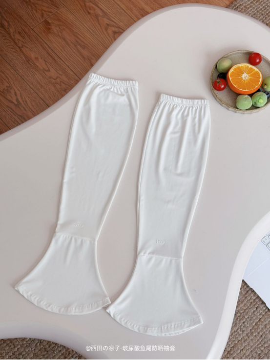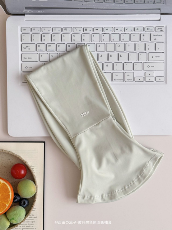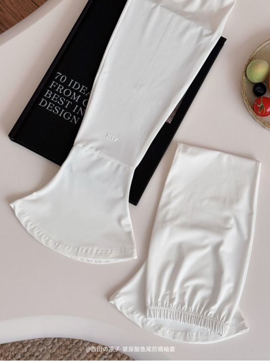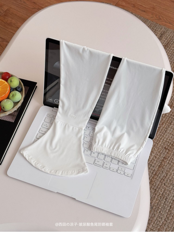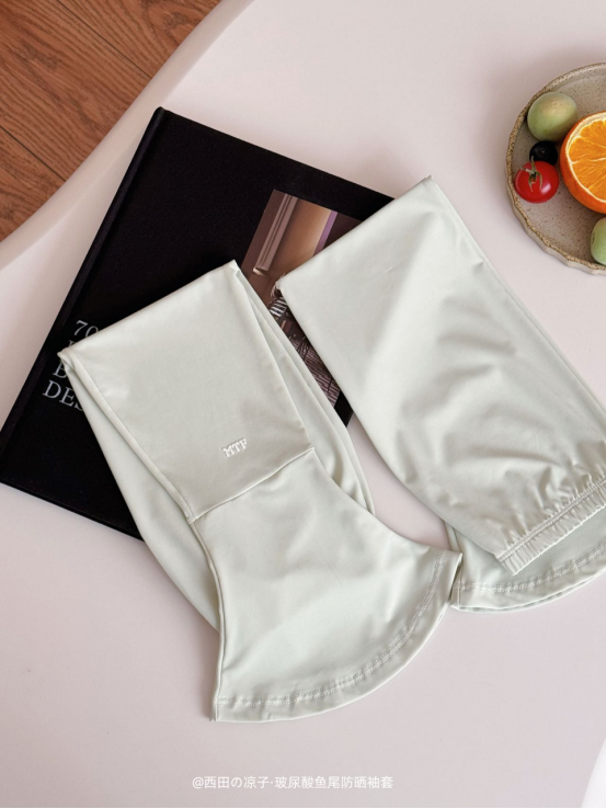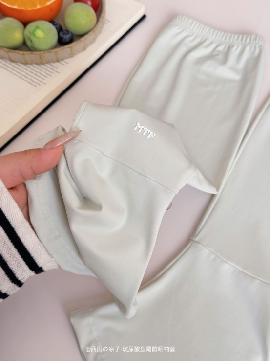 这款西田の凉子玻尿酸防晒袖套 不仅拥有极高的颜值,还注入实用黑科技 玻尿酸成分全天候滋润肌肤,不起皮、不闷热 3D立体鱼尾设计修饰手臂线条,穿上就显瘦