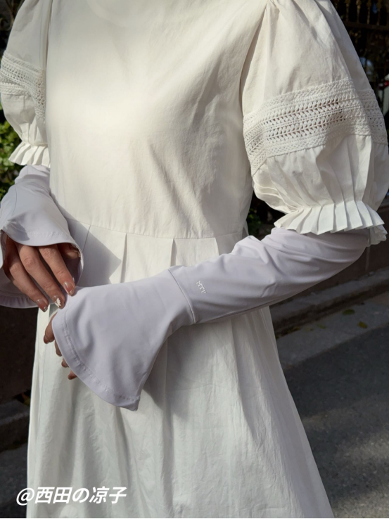 白色袖套更是防晒穿搭中的百搭王者 适合任何肤色,不挑风格,上身显得整洁利落 非常适合办公室白领、学生党 以及简约穿搭爱好者 西田の凉子防晒袖套不仅颜色高级 功能也十分贴心
