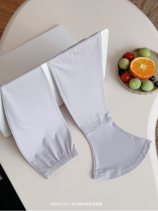 夏季防晒不将就,选择对的才是护肤第一步! 别让紫外线成为你的“隐形杀手” 也别再被厚重闷热的防晒装备束缚 西田の凉子·玻尿酸鱼尾防晒袖套 从功能到颜值,全面升级你对夏日防晒的认知