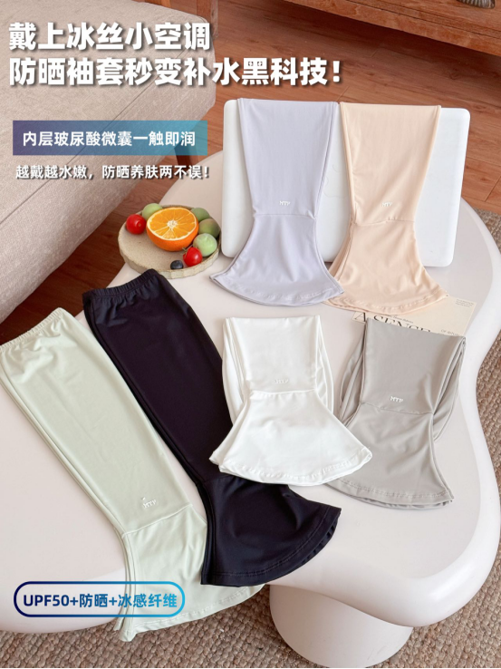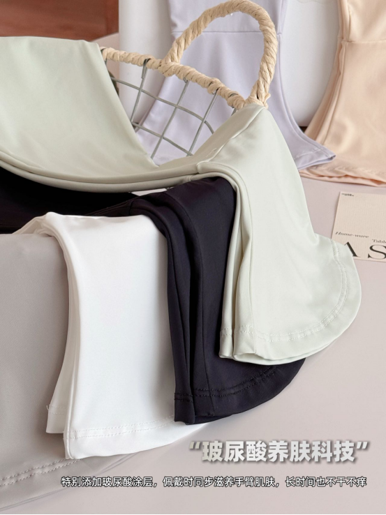 阳光下肌肤容易缺水干燥 长时间暴晒甚至会加速衰老 而玻尿酸袖套能在防晒的同时 为肌肤形成一层水润防护膜 边穿边养肤,夏天防晒不再“越防越干”!