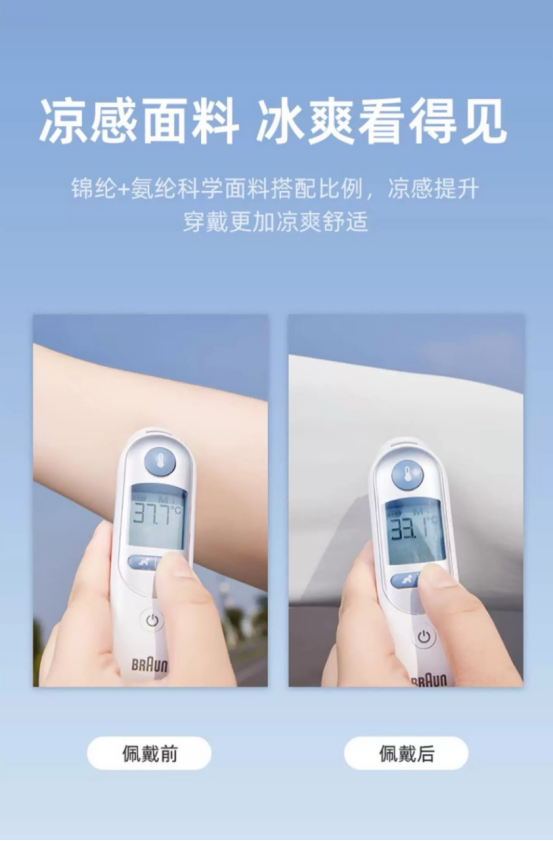 冰感面料,上身即凉 采用高弹冰感锦纶+氨纶面料 接触瞬间就是“冰冰凉”的肤感 夏天戴在手上完全没有压迫感 即使是在35°C的高温天 也不会有厚重或者闷热的感觉 反而像是贴了一层冷敷膜