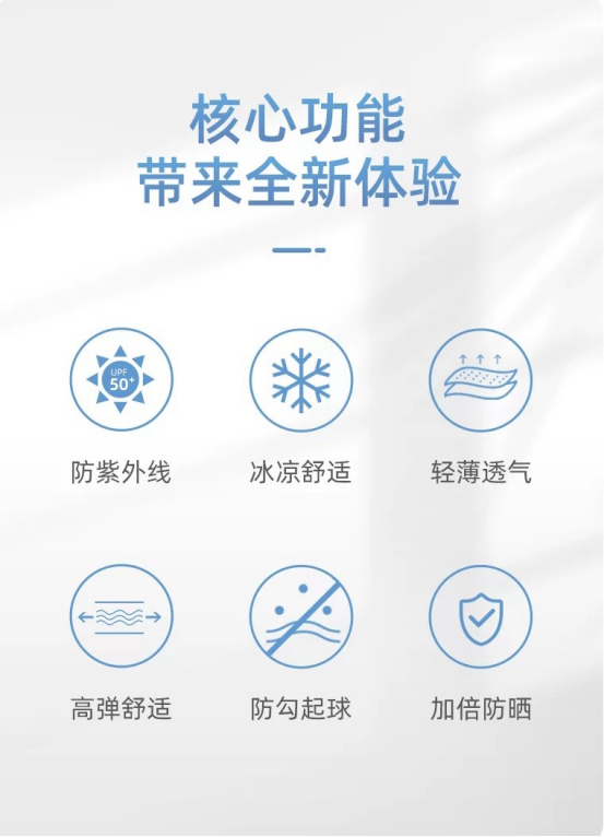 注入玻尿酸成分 长时间佩戴依然保湿亲肤,给肌肤喝饱水 采用防晒黑科技面料 能有效阻隔98%以上紫外线