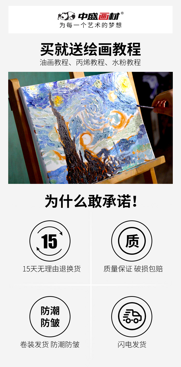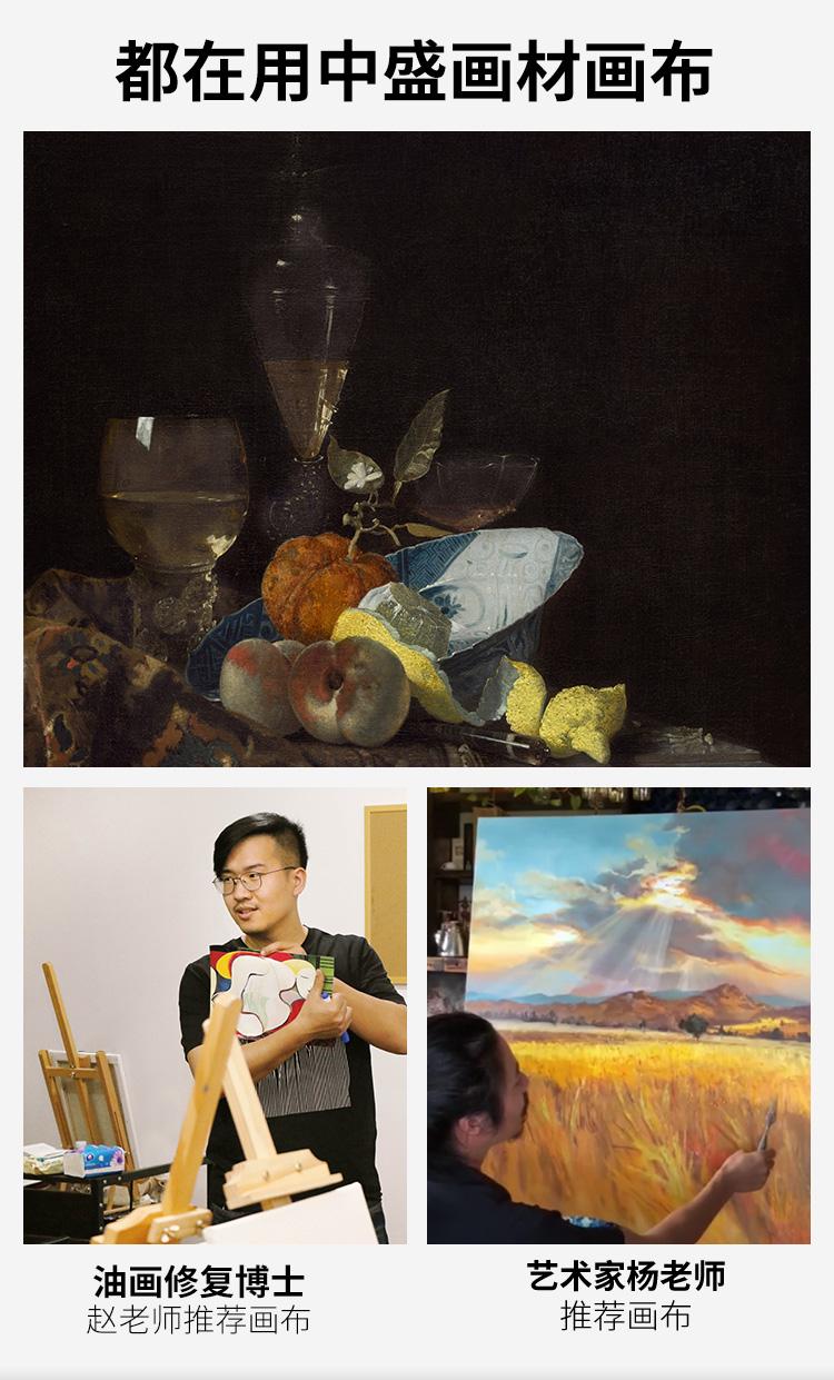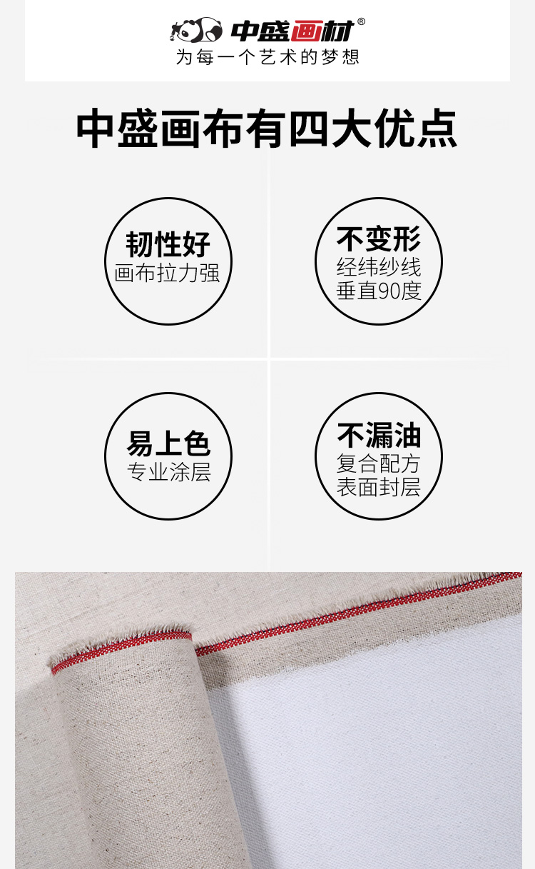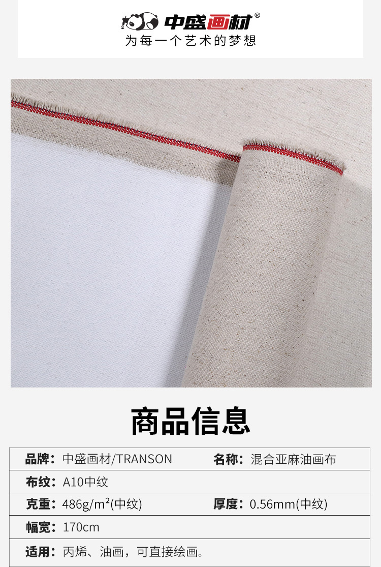 中盛画材 亚麻油画布中纹带涂层油画框布油画颜料用丙烯画布A10