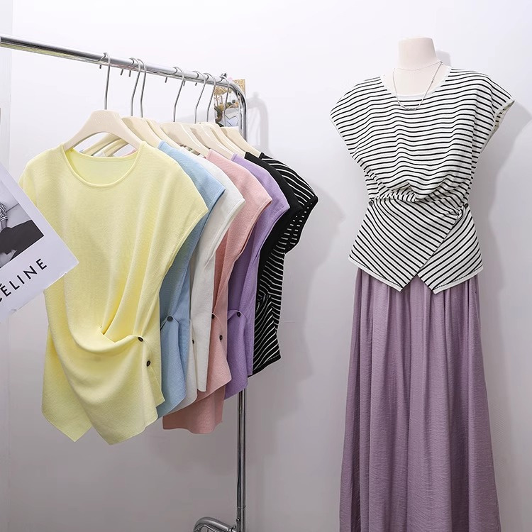 关键是价格💰还是非常划算的! 市面上这种冰丝针织材质的上衣,本身材质成本就高,价格贵! 稍微有点名字的牌子,一件就要将近200块! 摸到布料那刻我瞳孔地震🤩这凉感这质感,同行至少卖200+! 💰59.9元穿出299元质感!