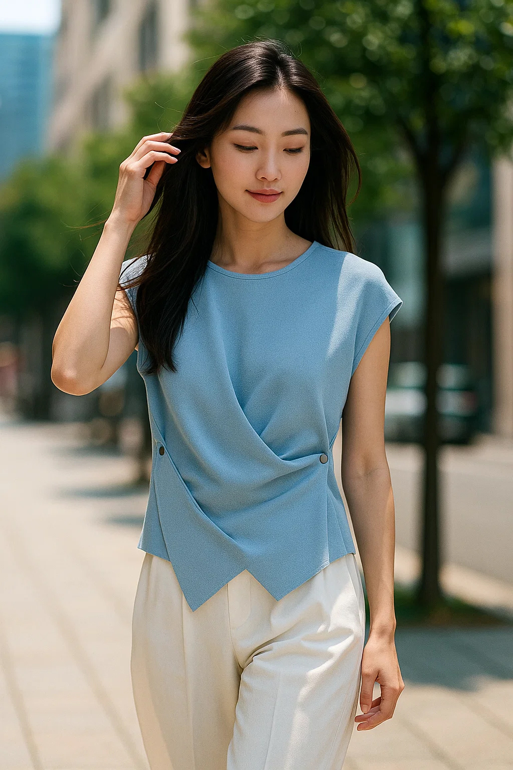 这种又修身又带着精致💅设计的面料 走在街上那种独特的气质一下就展现出来了 🧊冰丝面料,素有"纤维皇后"美誉 也被称为"天然空调",散热效果极佳👍 上身比其它面料感觉凉快3~4℃ 即便是炎炎夏日🌞也不会感觉闷热