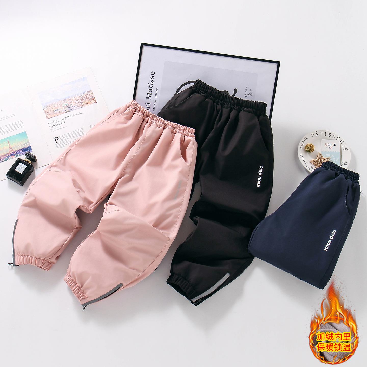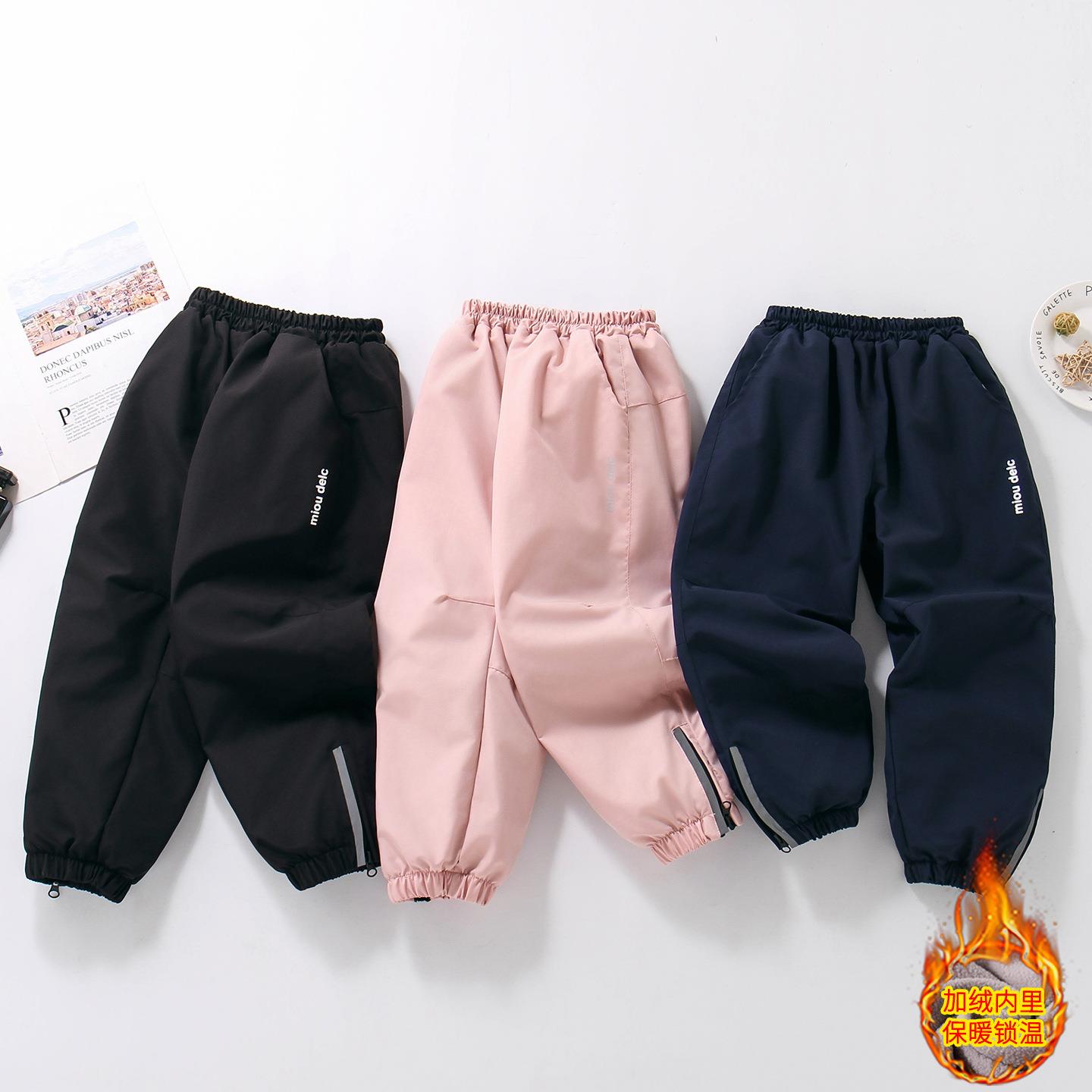 儿童加绒冲锋裤2025秋冬款中大童软壳一体绒加厚阔腿裤运动保暖裤