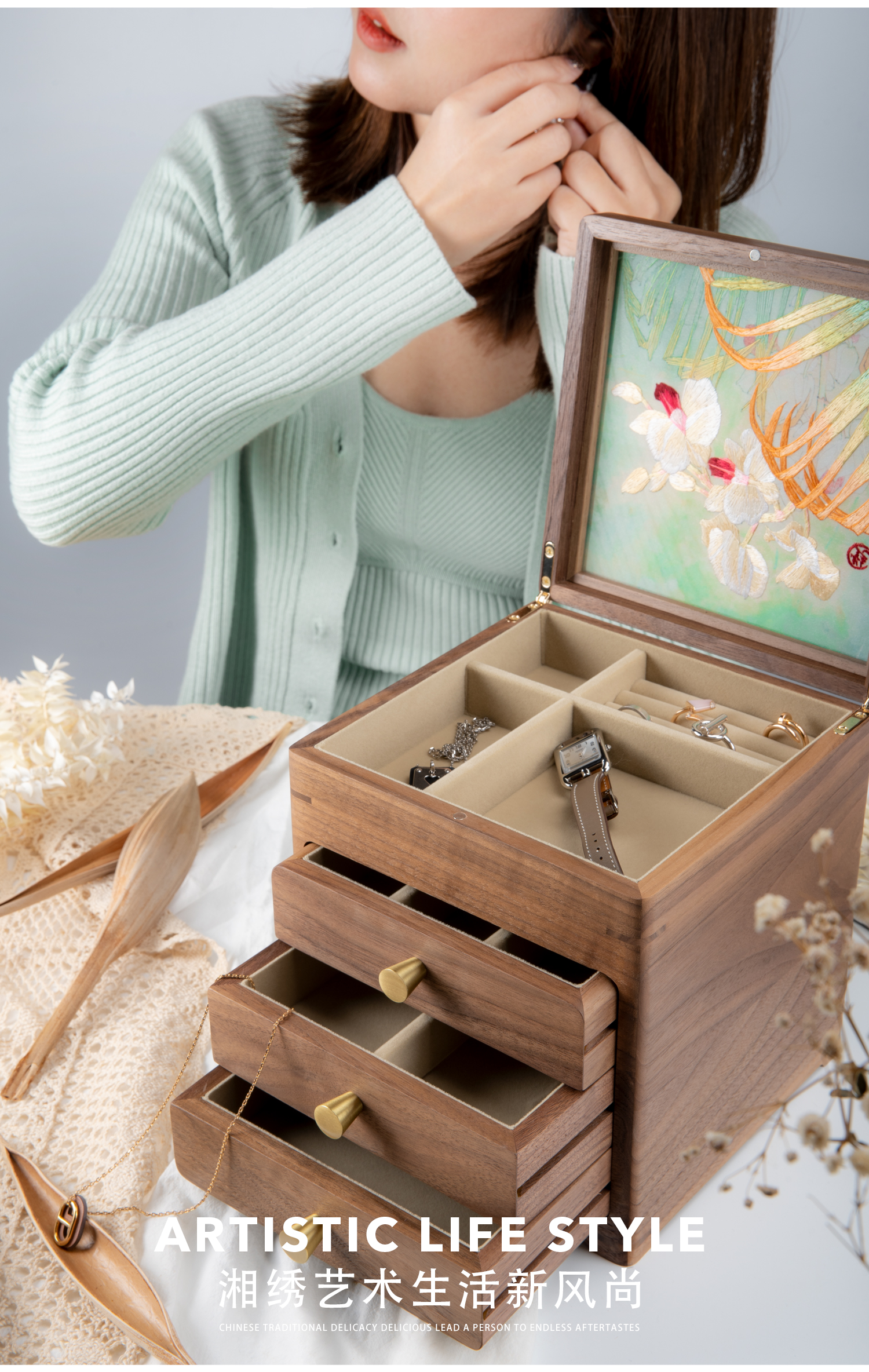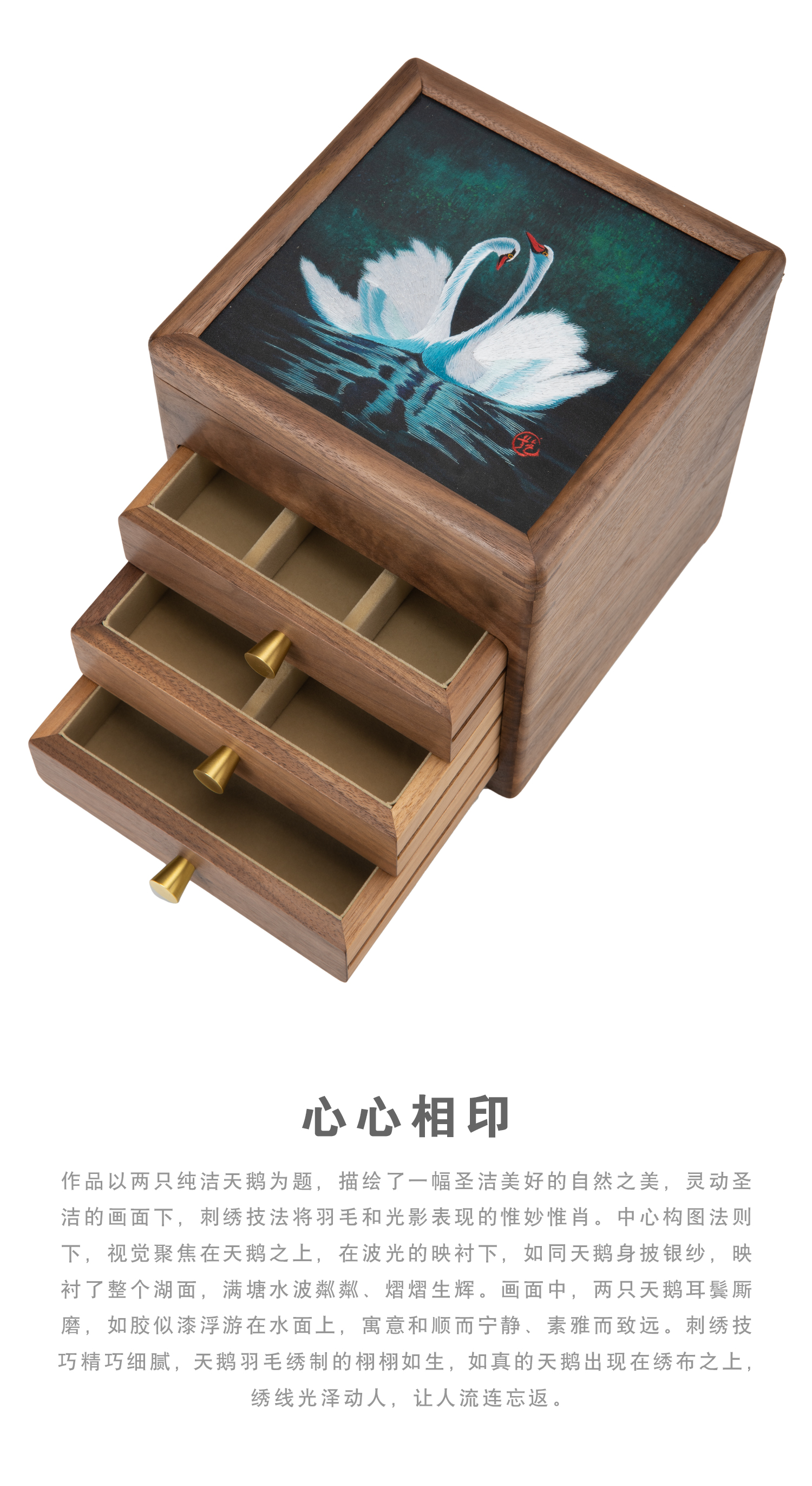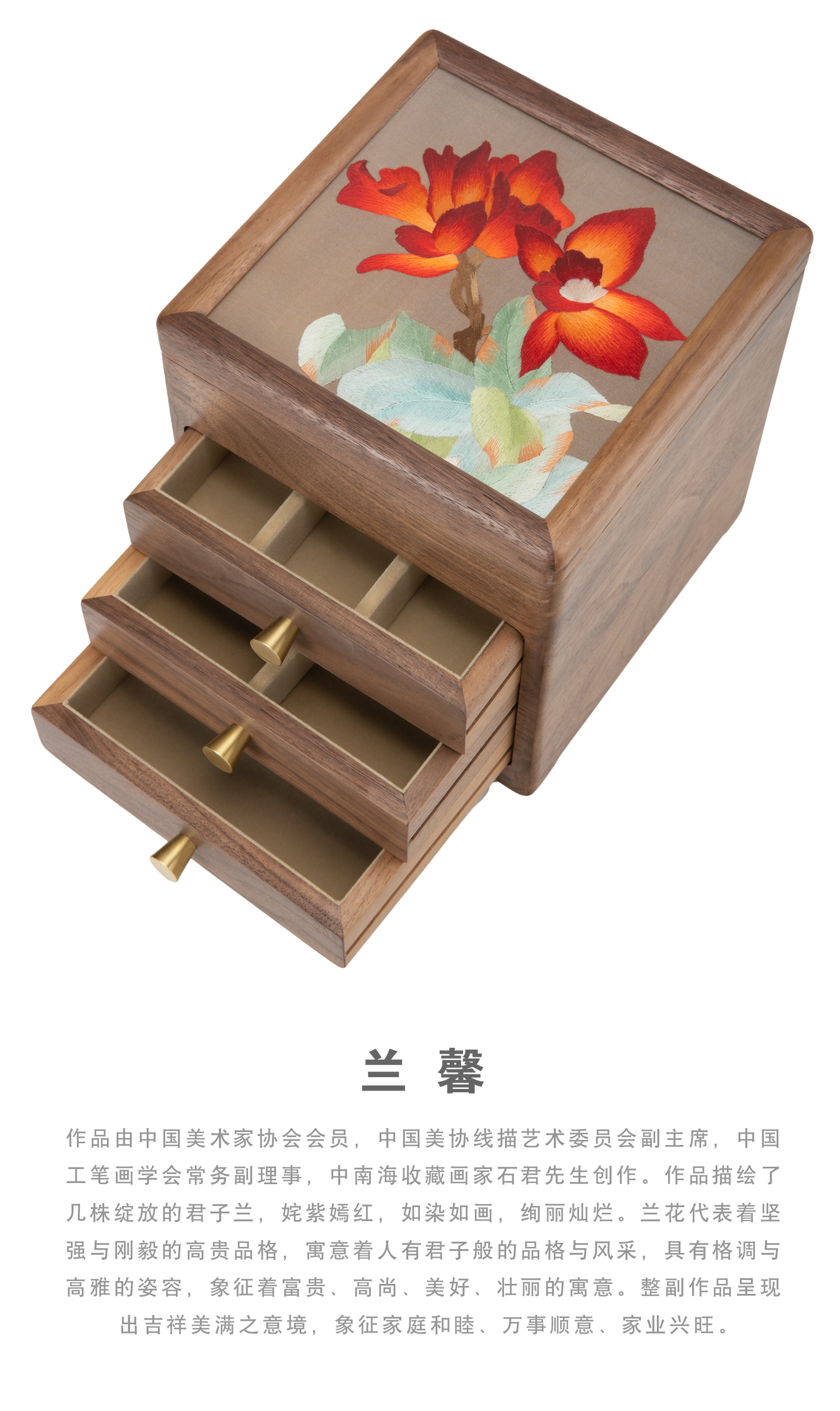 艷 湘绣 中式手工 贴边团扇+底座装套