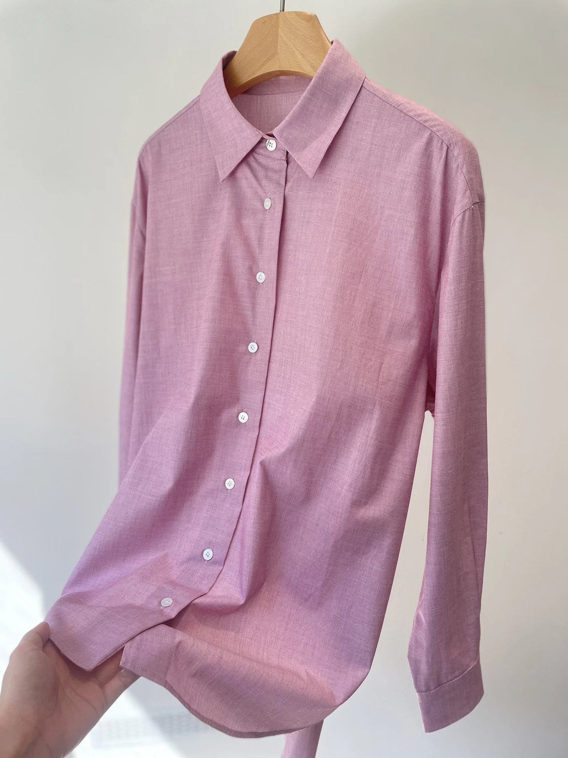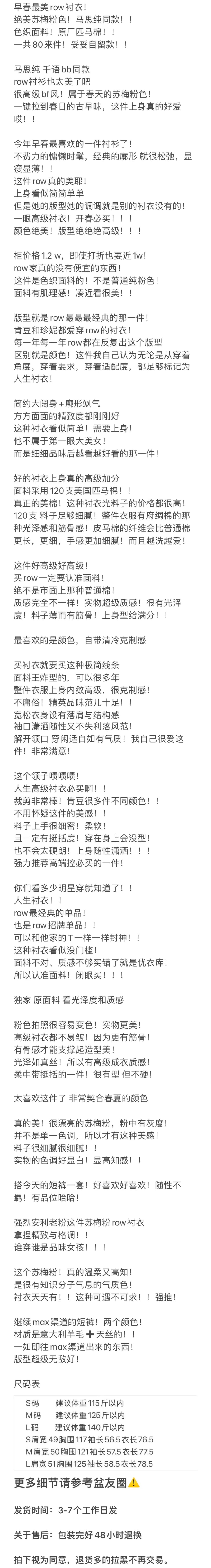 春夏新款 人手款! row蔷薇粉衬衣 120支匹马棉 色织面料 柔软有光泽