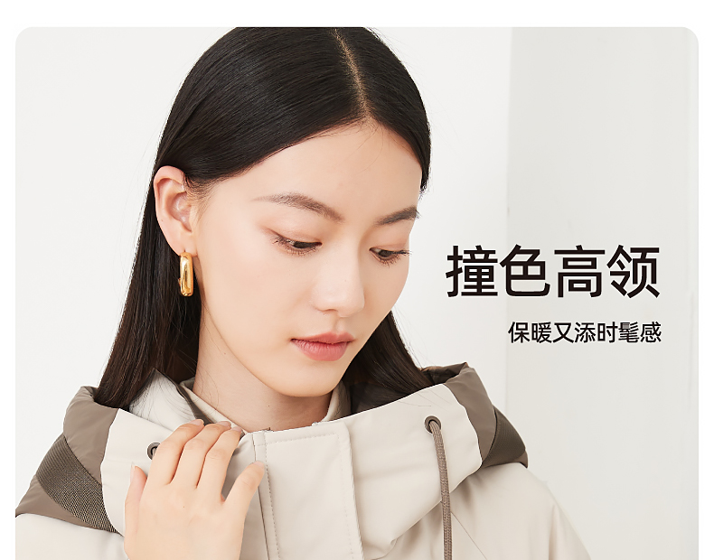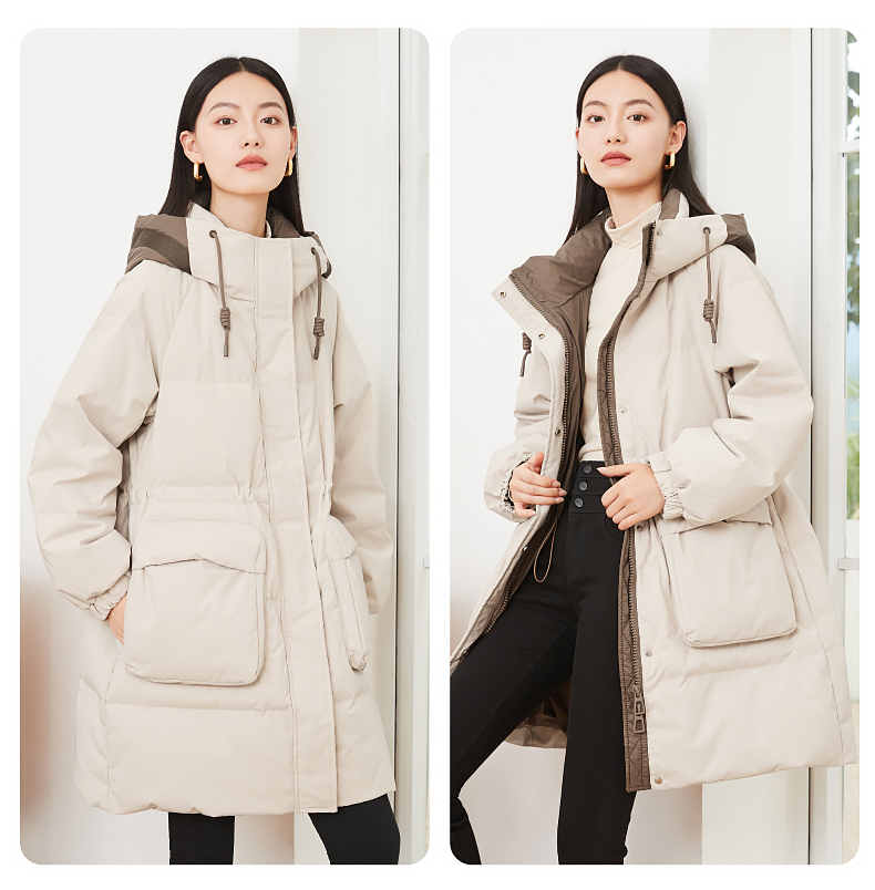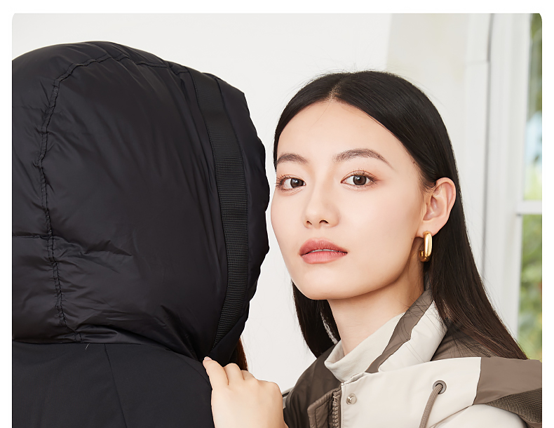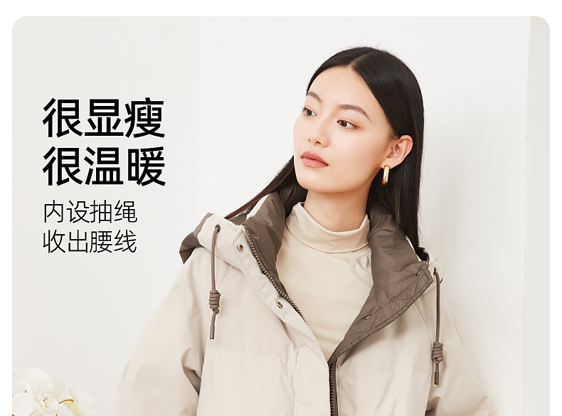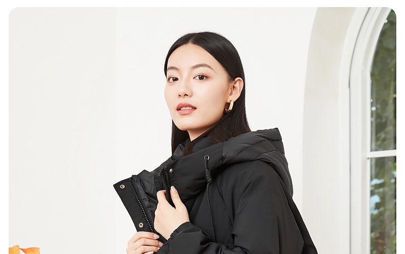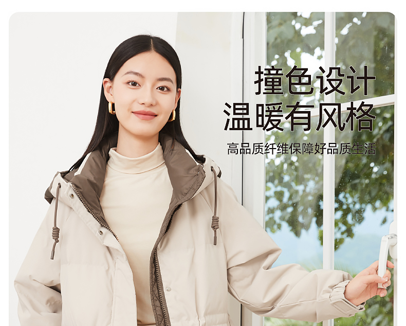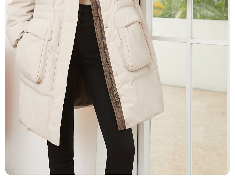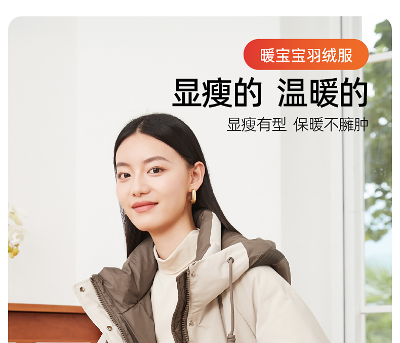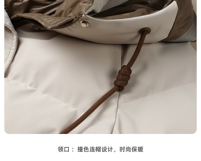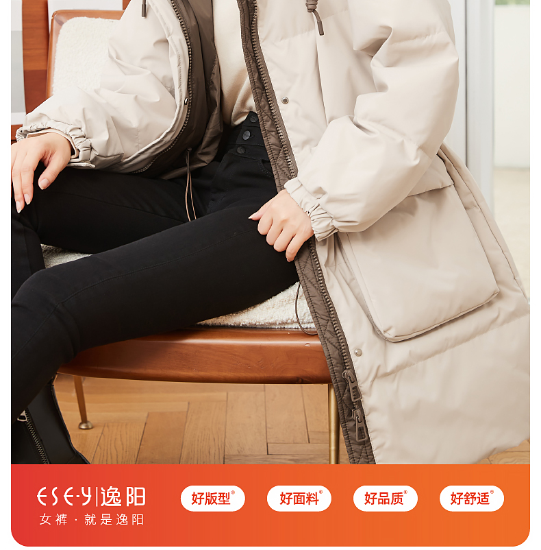 逸阳白鸭绒羽绒服女2023冬季新款立领连帽加厚保暖派克棉服9210