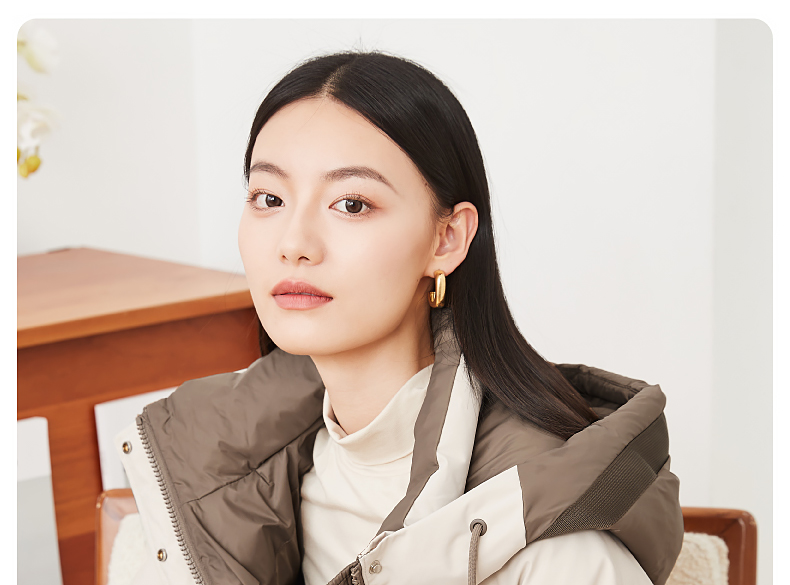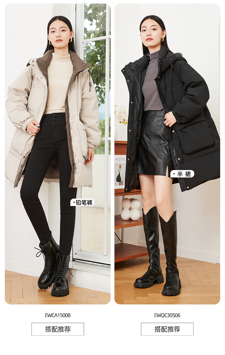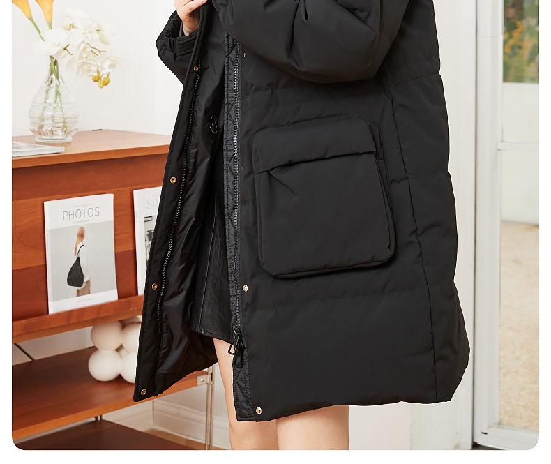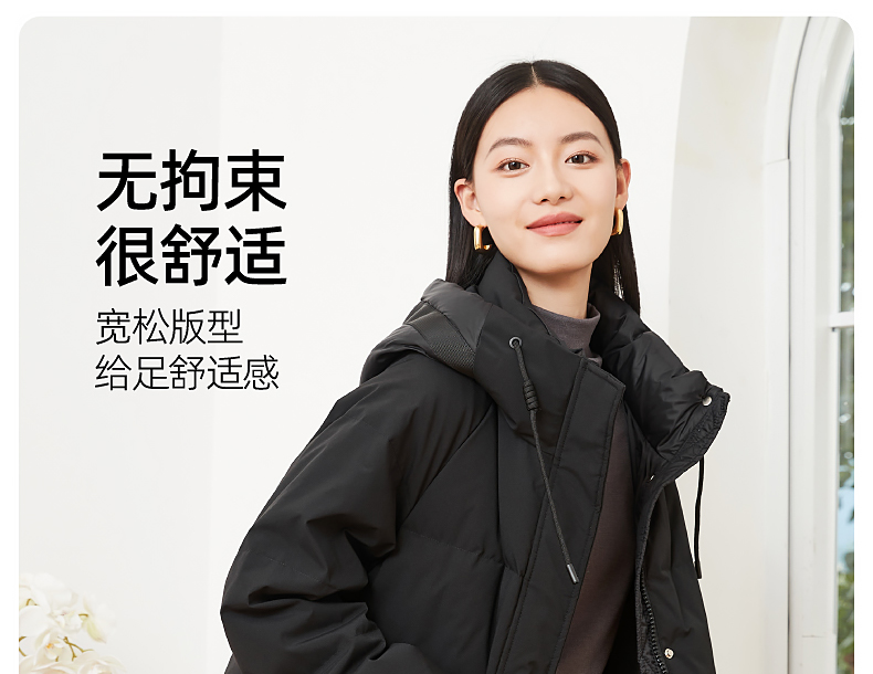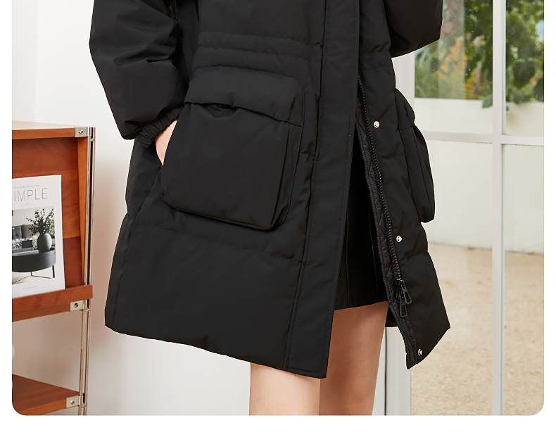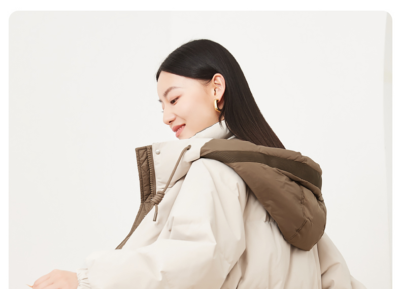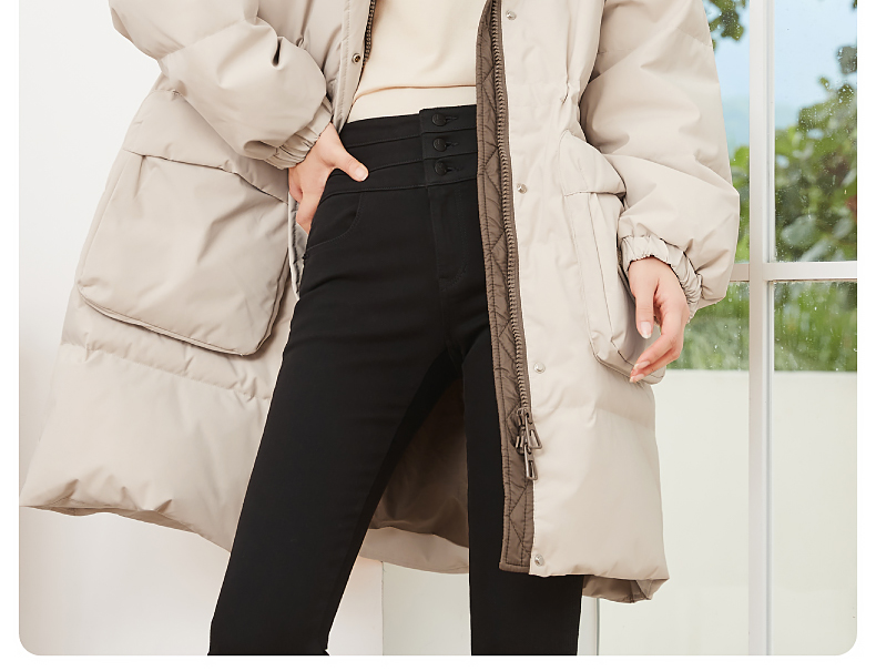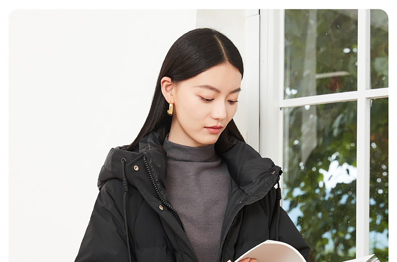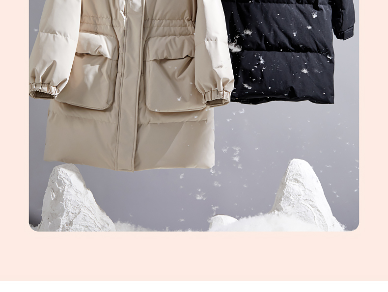 逸阳白鸭绒羽绒服女2023冬季新款立领连帽加厚保暖派克棉服9210
