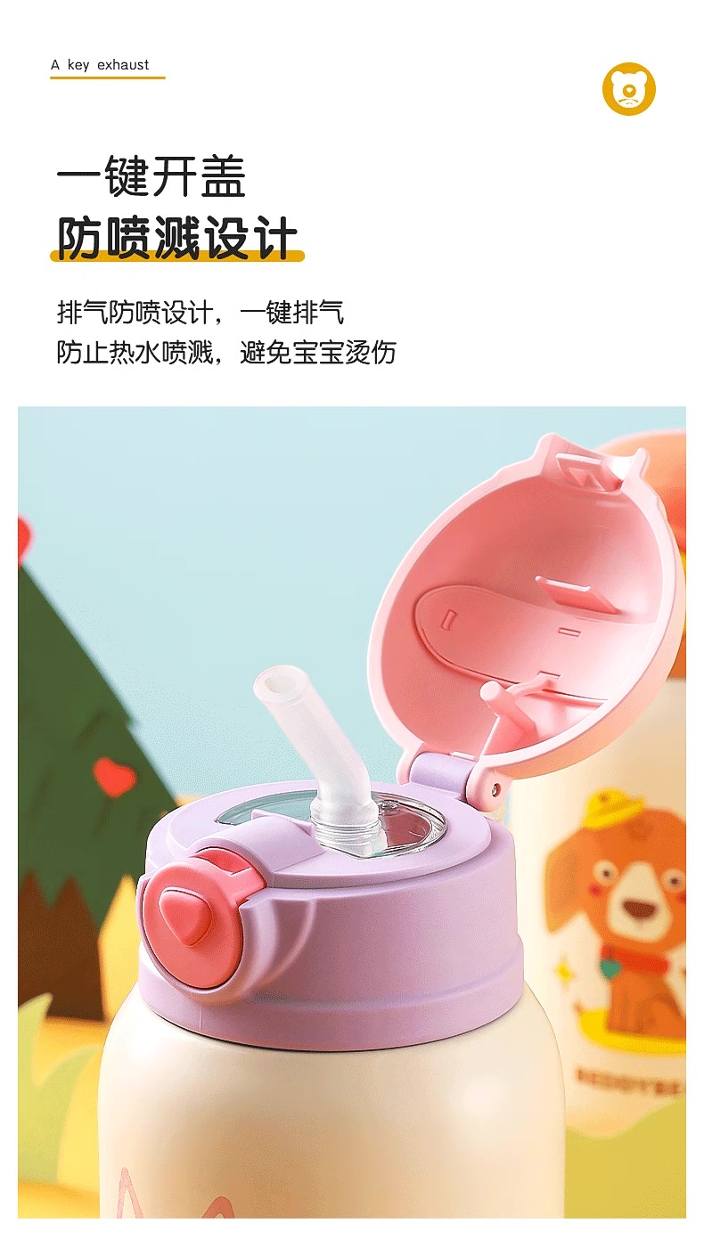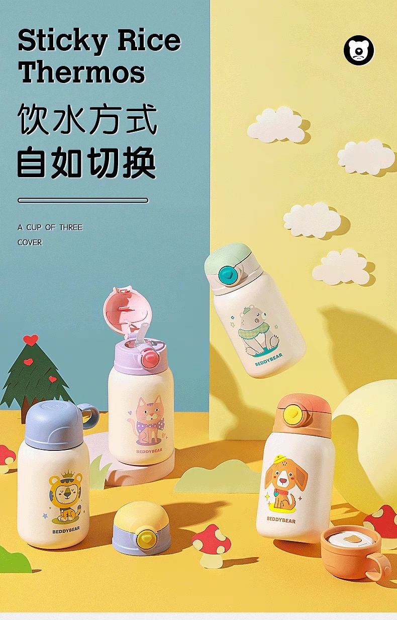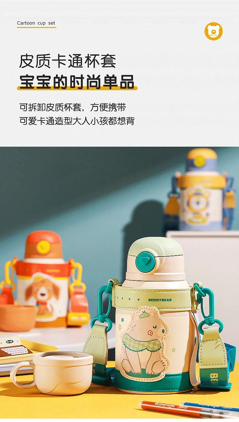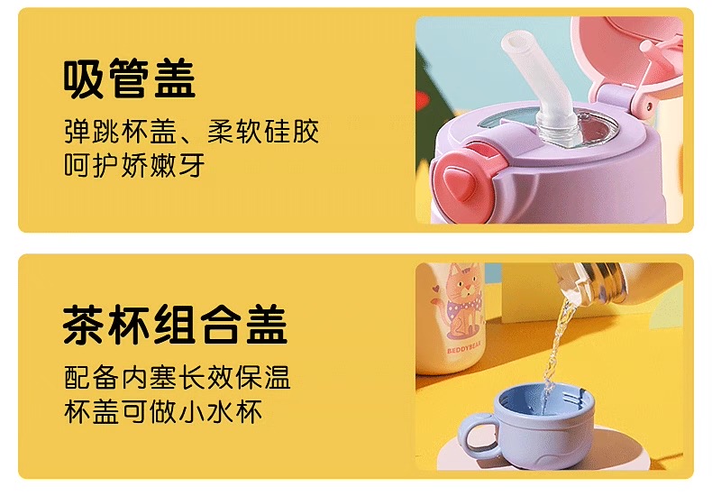 【品牌直发】【杯具熊清新萌宠系列糯米杯】儿童保温杯530ml 两盖吸管杯茶杯杯盖儿童幼儿园水壶316不锈钢