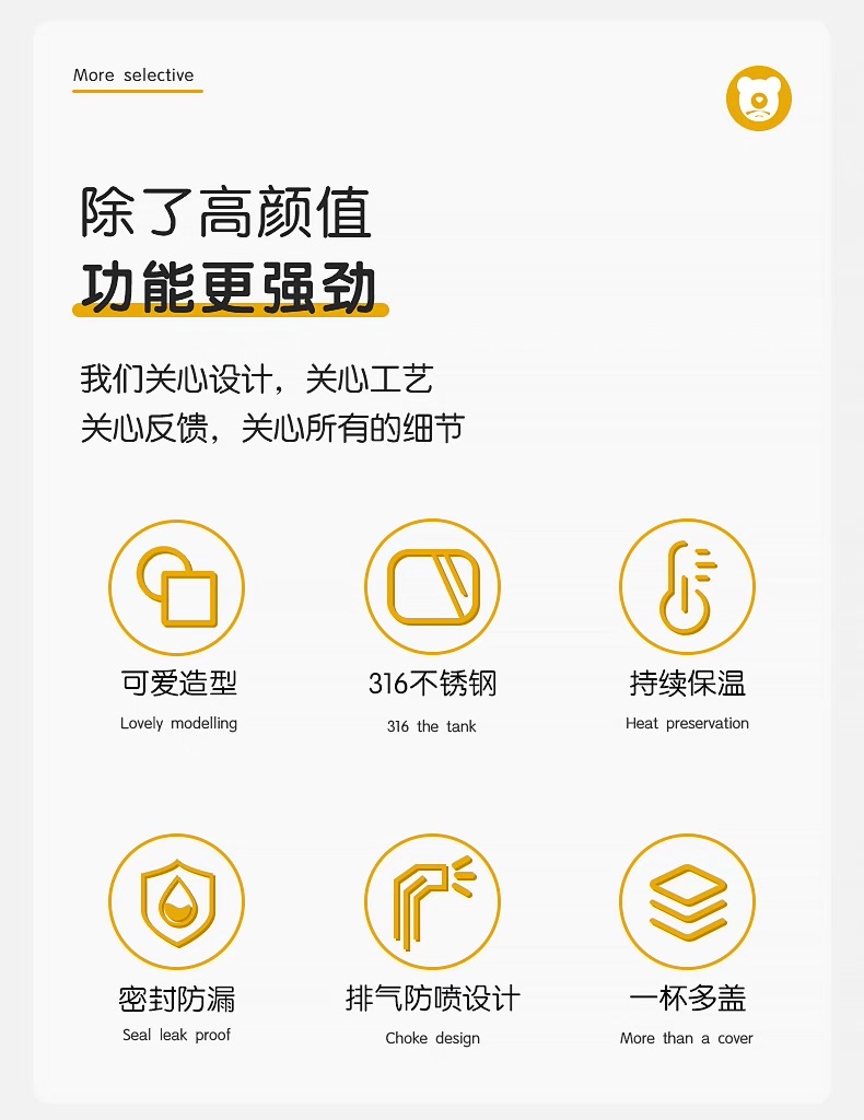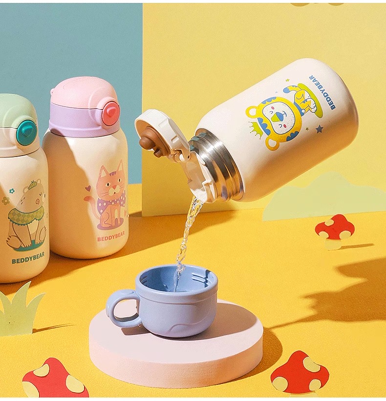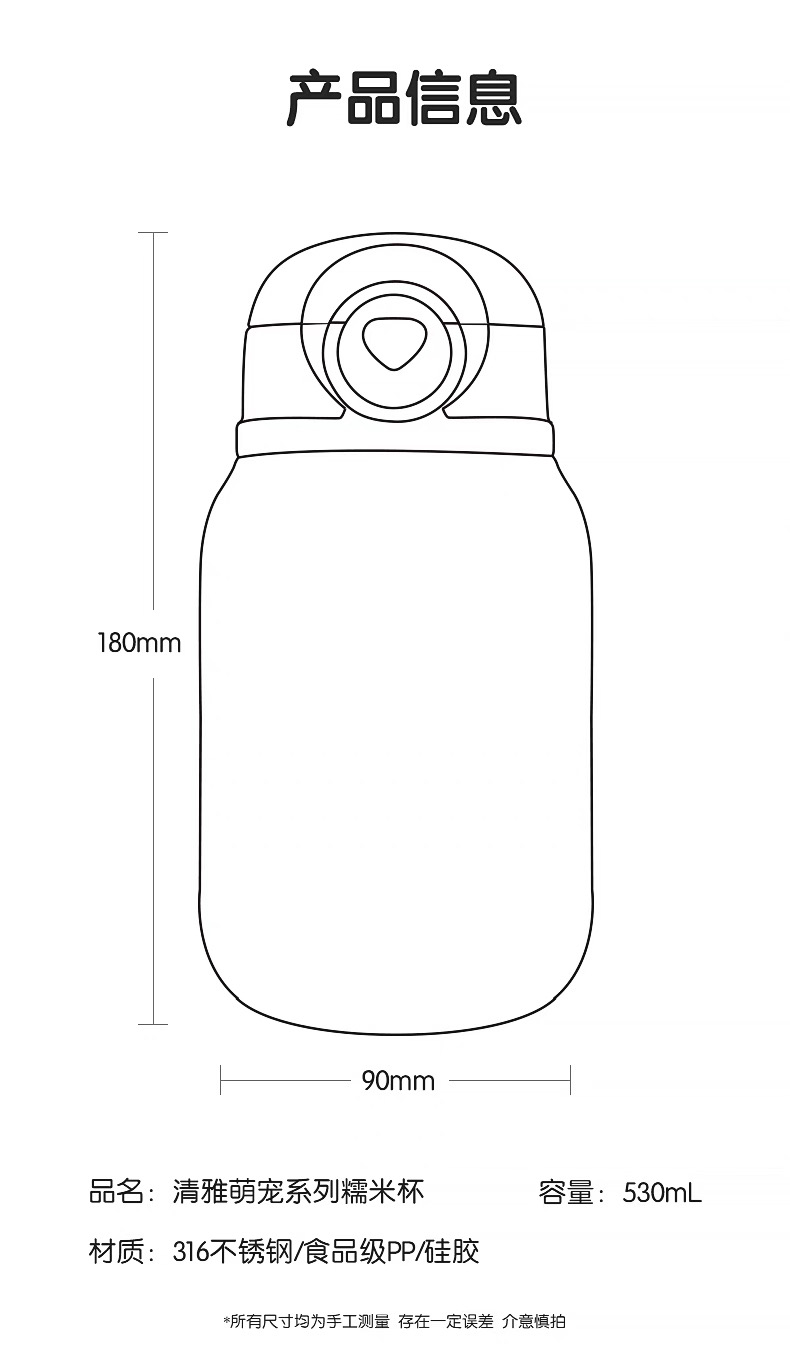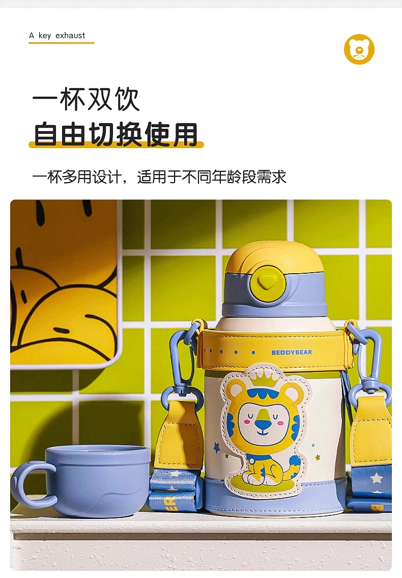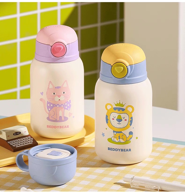 【品牌直发】【杯具熊清新萌宠系列糯米杯】儿童保温杯530ml 两盖吸管杯茶杯杯盖儿童幼儿园水壶316不锈钢