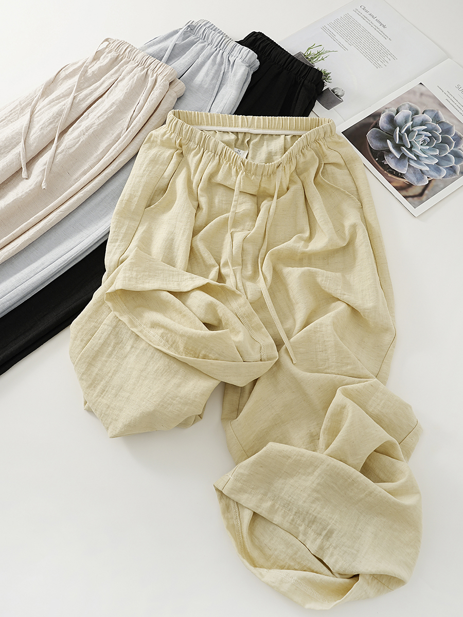 轻若无物 亚麻の呼吸术【梦惠妮 冰感亚麻修容裤】显瘦小心机 立显腿长 修饰腿型 藏胯遮肉 亚麻直筒裤 女阔腿裤 莫兰迪色系 #M663